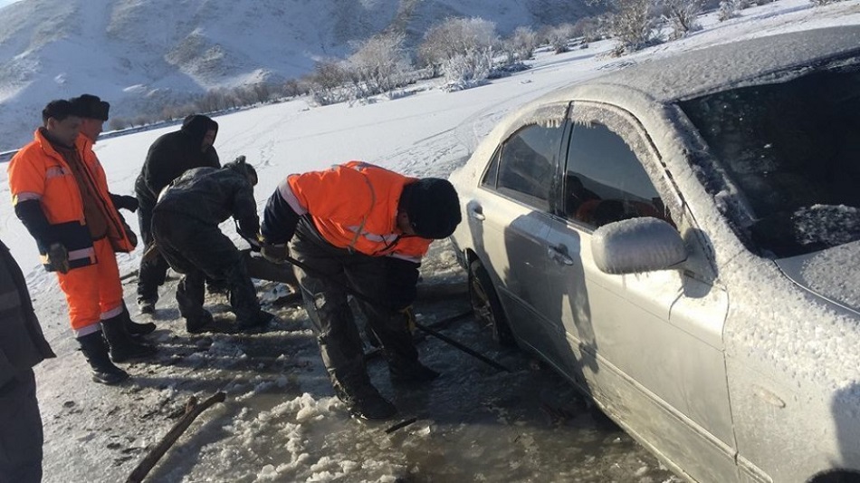Алба хаагчдыг очиход тус дүүргээс “Гурван хонгор” амралтын газрын чиглэлд 2 зорчигчтой зорчиж явсан иргэн В /69 настай эрэгтэй/-гийн “Тоёота Румён” загварын суудлын автомашин “Хэрлэн” голын мөс цөмөрч суусныг татан гаргасан юм.