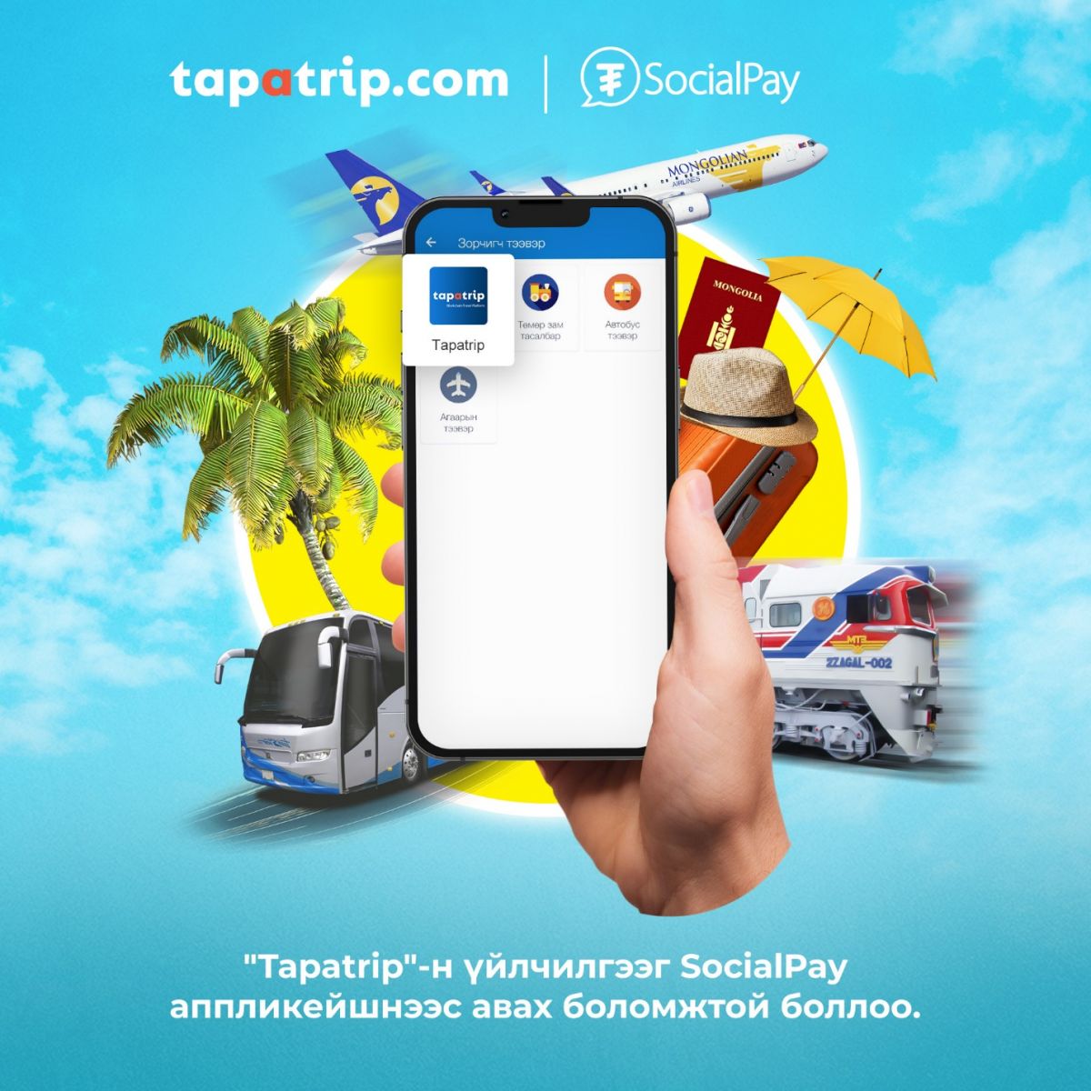 Олон төрлийн үйлчилгээг хэрэглэгчдэдээ хүргэж, тогтмол хөнгөлөлт, урамшууллаар бэлэг барьдаг SocialPay аппликэйшн Тапатрип ХХК-тай хамтран зайнаас тасалбар захиалах үйлчилгээг нэвтрүүлж байна.