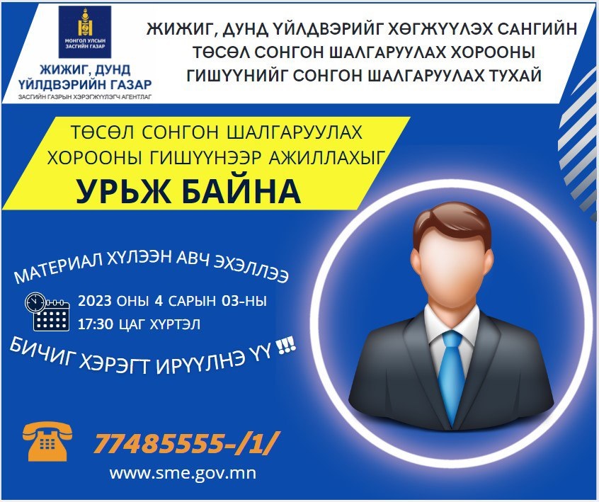 www.sme.gov.mn цахим хуудаст БҮРТГҮҮЛЭН НЭВТЭРЧ хүсэлтээ илгээнэ үү !!!