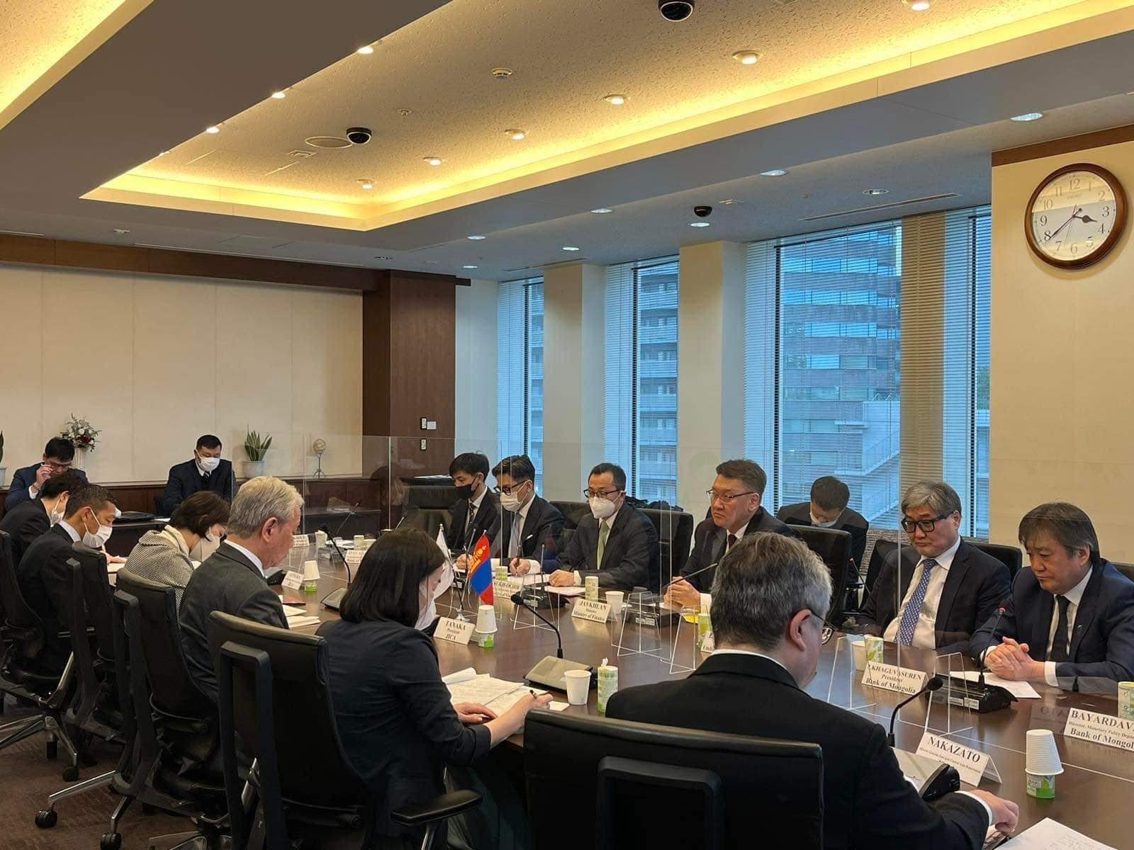 Мөн өнөөдөр Сангийн сайд ЖАЙКА-ын Ерөнхийлөгч Танакатай уулзалт хийж, одоо хэрэгжиж байгаа төсөл хөтөлбөрүүдийн талаар болон эдийн засгийн нөхцөл байдлын талаар санал солилцсон. Түүнчлэн Монгол Японы энх тайван, хөгжил цэцэглэлийн төлөөх тусгай стратегийн түншлэлийн үйл ажиллагааны дунд хугацааны /2022-2031он/ хөтөлбөрийн талаар санал солилцсон юм.