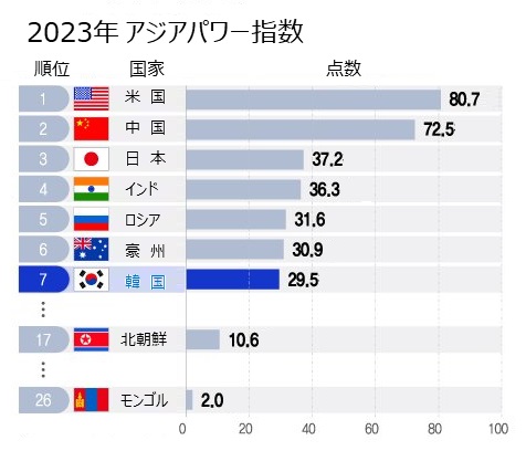Хоёрдугаар байрт Хятад улс 72.5 оноотой бичигдсэн. Шинжээчид ковидын хөл хорионы хязгаарлалтын бодлогоосоо болж, Хятадын нөлөө буурсан гэж үзжээ.