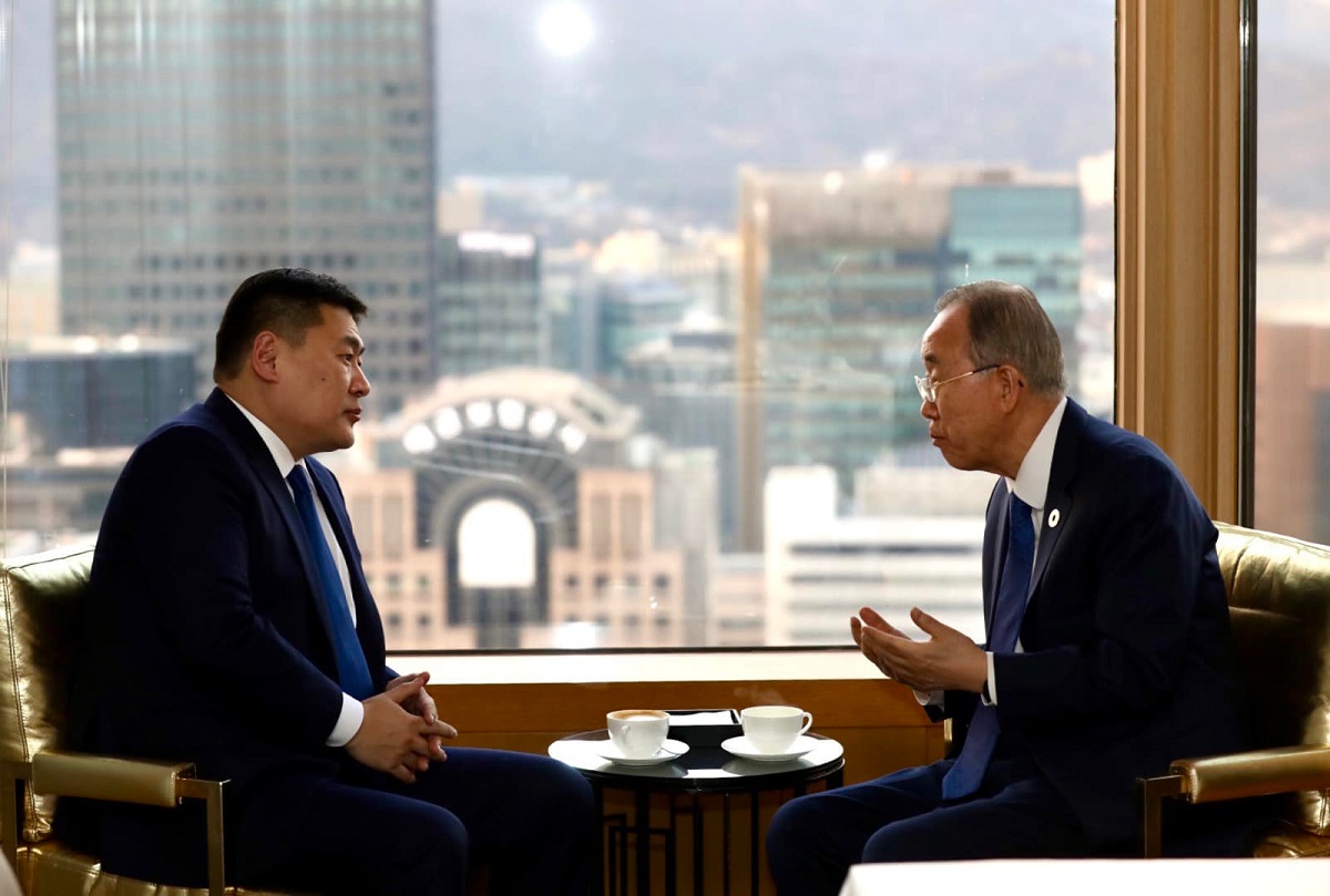 Монгол Улсын Ерөнхий сайдын БНСУ-д хийж буй айлчлалын хүрээнд НҮБ-ын Ерөнхий нарийн бичгийн дарга асан Бан Ги Мүн Ерөнхий сайд Л.Оюун-Эрдэнэд бараалхав.
