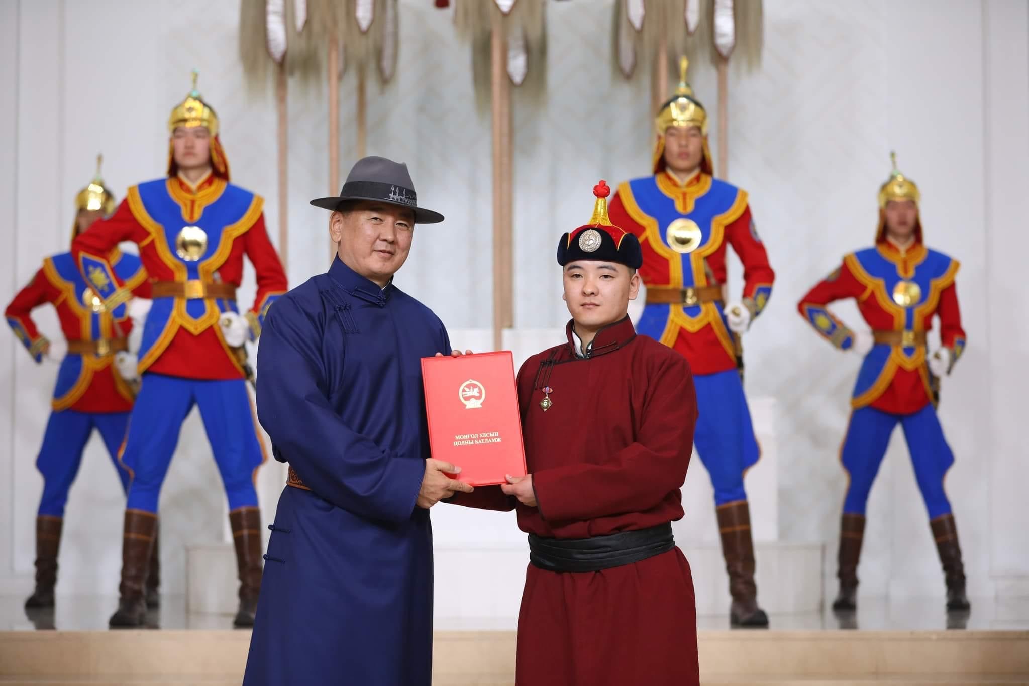 Монгол Улсын Ерөнхийлөгч Ухнаагийн Хүрэлсүх зарлиг гарган, Үндэсний Их баяр наадмын тухай хуулийн 10 дугаар зүйлийн 10.4, 10.7, 10.9 дэх хэсэгт заасан болзлыг хангасан Монгол Улсын цол хүртээв.