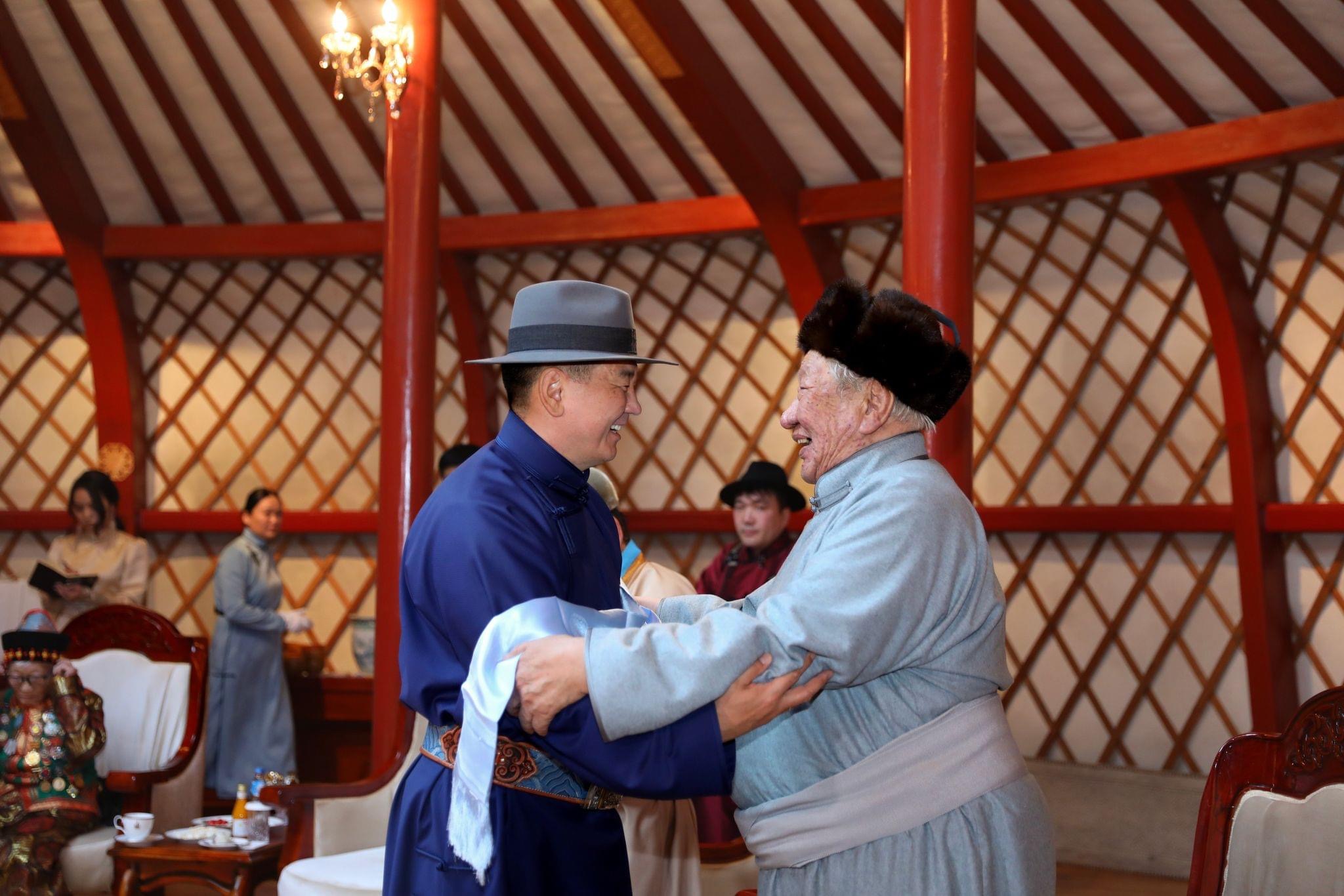 Төрийн ордонд ахмад дайчин, төр, нийгмийн зүтгэлтэн, Алдарт эх, зохиолч, яруу найрагч, малчин, цагдаагийн генерал, багш, барилгачин, эмч гээд 81-99 настай азай буурлууд хүрэлцэн иржээ.
