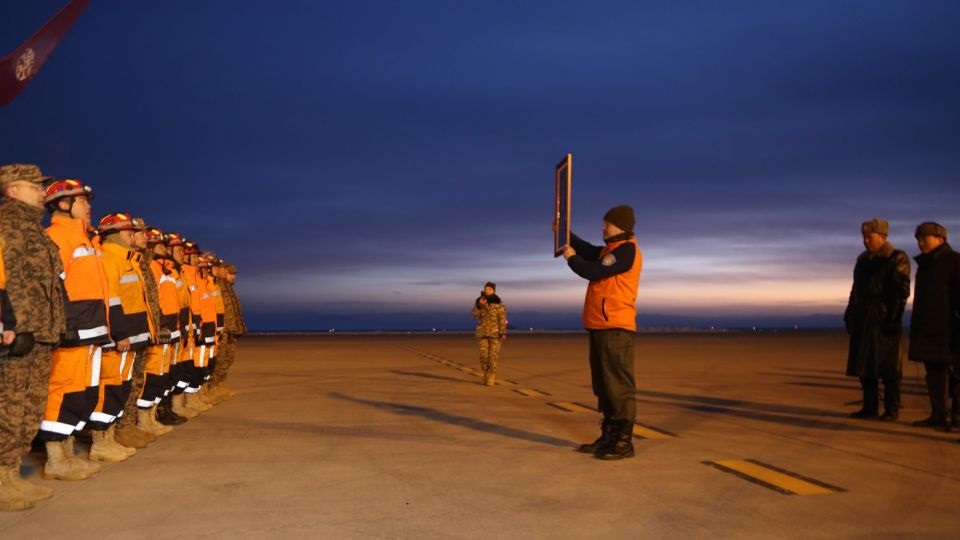 Шагнал гардуулах ёслолын үеэр ОБЕГ-ын дарга, хошууч генерал Г.Ариунбуян хэлсэн үгэндээ, “Монгол Улсын Үндэсний аюулгүй байдал, хүн ардынхаа амь нас, эрүүл мэнд, эд хөрөнгө, хүрээлэн буй орчныг гамшиг ослоос авран хамгаалах хүндтэй бөгөөд хариуцлагатай үүргийг хүлээсэн Онцгой байдлын байгууллага жилээс жилд өргөжиж, дэлхийн жишигт хүрсэн хүчирхэг алба болон хөгжихөд галын шугамын тэргүүн эгнээнд гамшиг, осолтой нүүр тулан тэмцэж байдаг аврагч, гал сөнөөгч, эгэл жирийн алба хаагчдын маань гавьяа зүтгэл нэн их гэдгийг өнөөдөр онцлон тэмдэглэмээр байна. Хэлж ирдэггүй хийсч ирдэг газар хөдлөлтийн гамшигт нэрвэгдсэн БНТУ-ын Хатая мужид Монголын Улсаа төлөөлөн Онцгой байдлын байгууллагаас 24 алба хаагч, 2 эрэлч нохойн хамтаар Зэвсэгт хүчний эмнэлгийн бүлэгтэй нурангиас эрэн хайх, аврах, эмнэлгийн тусламж үзүүлэх ажиллагаанд дэмжлэг үзүүлж, үүргээ амжилттай гүйцэтгээд эх орондоо ирлээ. Монгол Улсын “Эрэн хайх, аврах баг” амаргүй, эрсдэлтэй нөхцөлд үүргээ нэр төртэйгөөр биелүүлж, төр засаг, Монгол түмнийхээ итгэл найдварыг алдалгүй шуурхай ажилласныг та бүхэндээ дуулгахад таатай байна” гэлээ.