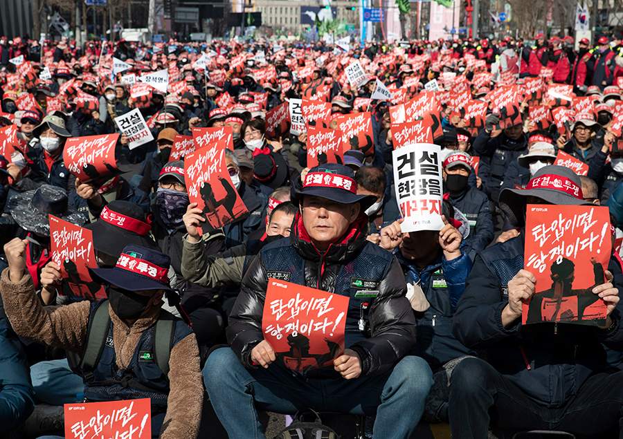 БНСУ-ын Сөүл хотноо барилгын ажилчдын Үйлдвэрчний эвлэлээс Засгийн газрын эсрэг жагсаал зохион байгууллаа.