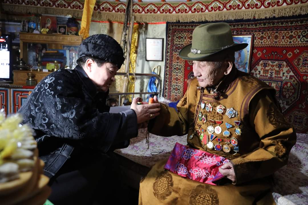 Түүнчлэн "Зуу насалж, зургаадай таяг тулсан ахмад дайчин Ядамжавын АЛТАНГЭРЭЛ абугайд золголоо. Тэрбээр 1945 оны Чөлөөлөх дайнд оролцож явсан түүхтэй билээ.