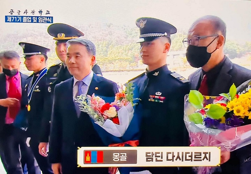 Мөн Агаарын цэргийн сургуулийг нисэхийн инженер, нисгэгчгүй нисэх төхөөрөмжийн мэргэжилтнээр алтан медальтай төгсөж буй дэд ахлагч Д.Дашдоржид Батлан хамгаалахын сайд Ли Жун Соб өөрийн биеэр баяр хүргэж, сургуульд суралцах хугацаандаа өөрийнх нь нэрэмжит нисгэгчгүй нисэх төхөөрөмжийн тэмцээнд тэргүүн байр эзэлж, эх орныхоо нэрийг гаргасанд дахин баяр хүргэж, Солонгост сурсан мэдсэн зүйлээ эх орондоо хэрэгжүүлэх, хоёр орны цэргийн хамтын ажиллагаанд хувь нэмрээ оруулахыг хүсэв.