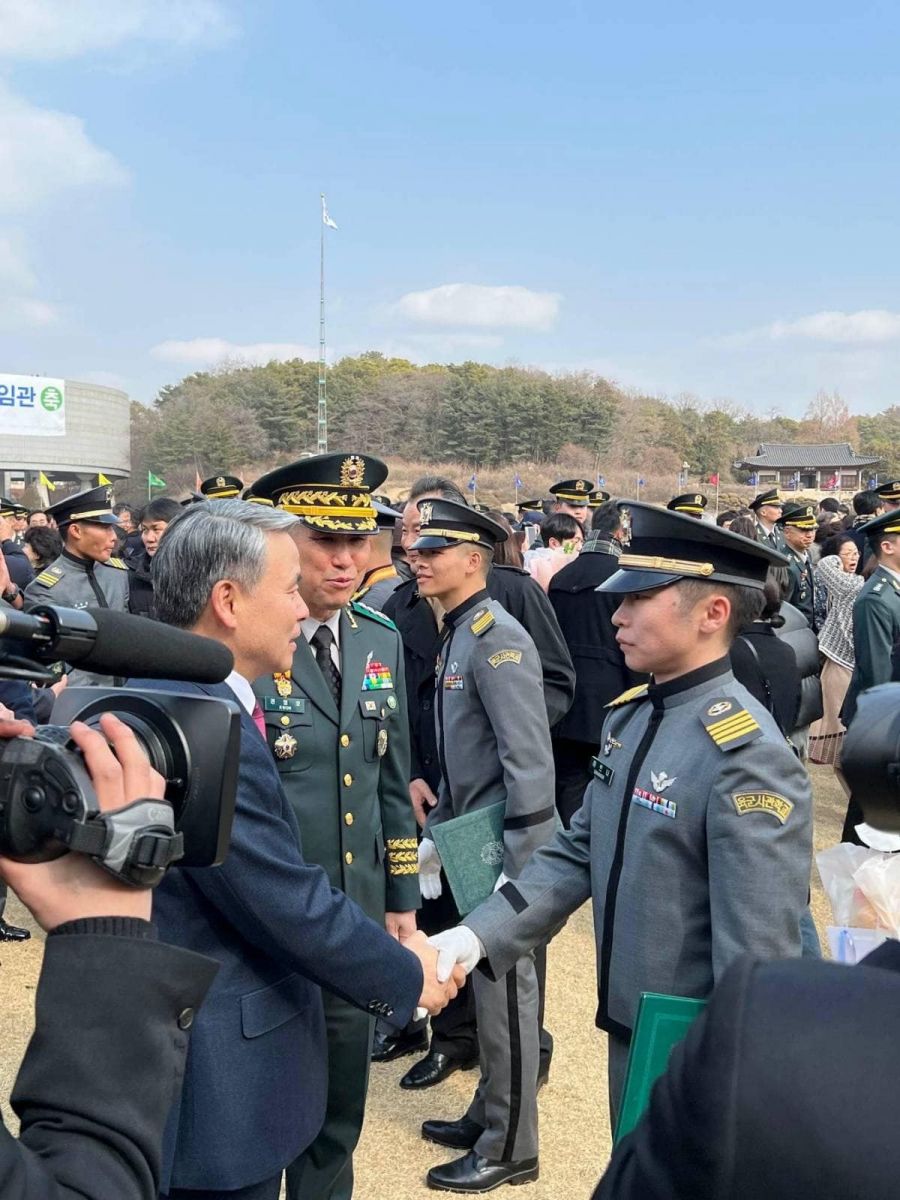 Хуурай замын цэргийн сургуулийг амжилттай төгссөн дэд ахлагч Г.Хатансайхан БНСУ-ын Батлан хамгаалахын сайд Ли Жун Соб өөрийн биеэр баяр хүргэж, Монгол Улс, БНСУ-ын Стратегийн түншлэлийн харилцааны нэг чухал хэсэг болох батлан хамгаалах салбарын харилцаа өндөр түвшинд хүрэн хөгжиж байгааг дурдаад хоёр орны цэргийн хамтын ажиллагаанд өөрийн сурсан, мэдсэн зүйлээ зориулахыг хэлж, Хуурай замын цэргийн “дайчин нөхөр” шагналыг гардуулав.