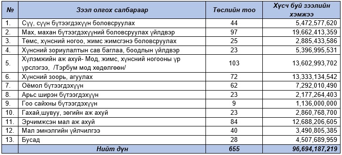 2. ХХААХҮ-ийн Сайдын 2023 оны 02 дугаар сарын 02-ны өдрийн А/37 дугаар тушаалаар батлагдсан хөнгөлөлттэй зээл олгох Ерөнхий нөхцөл, салбар, чиглэлийн дагуу ирсэн хүсэлийн тоо салбараар.
