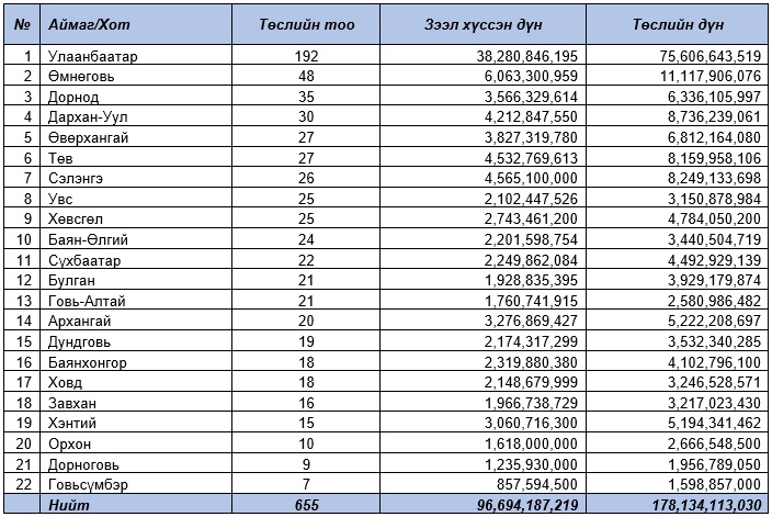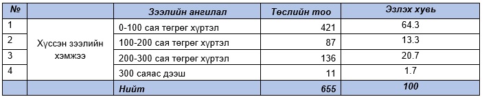 1. Төсөл хүлээн авах цахим системд нийт 655 аж ахуйн нэгжийн 96,694,187,219.00 төгрөгийн зээлийн хүсэлтийг баталгаажуулсан байна. Жижиг, дунд үйлдвэрийг хөгжүүлэх сангаас хөнгөлөлттэй зээл олгох, сонгон шалгаруулах, дамжуулан зээлдүүлэх, эргэн төлүүлэх, хяналт тавих журам”-д заасны дагуу борлуулалтын орлогоос хамааруулан зээл хүсэх дээд хэмжээг заасан бөгөөд 655 аж ахуйн нэгжийн 96,7 тэрбум төгрөгийн зээлийн хүссэнээс 64,3 хувь нь 100 хүртэл сая төгрөгийн зээл хүссэн байна.