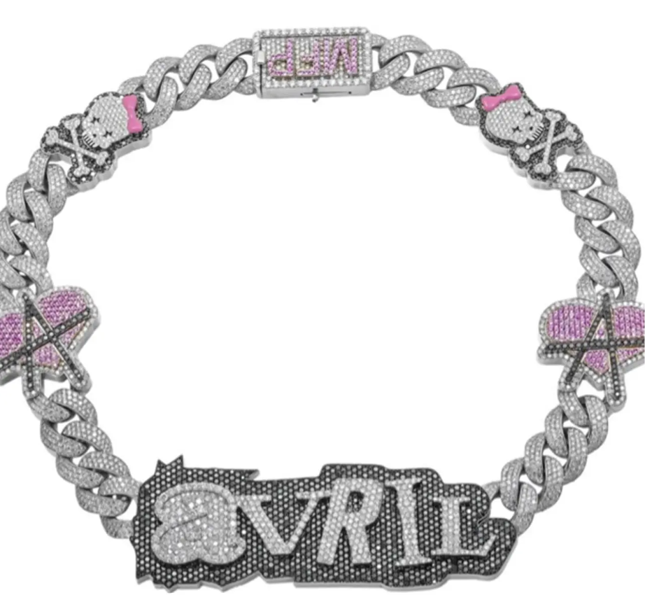 Нью Йорк хотод байрлах алдартнууд үнэт эдлэл урлаач Эрик Мавани уг зүүлтэд 50 каратын хар болон цагаан алмааз, ягаан индранил чулуу орсон гэжээ. Хүзүүний зүүлтэд Аврилийн нэр мөн бичээстэй байх бөгөөд зүрхэн дээрх А үсэг болон гавлын яс, MFP хэмээх товчлол багтсан байна.