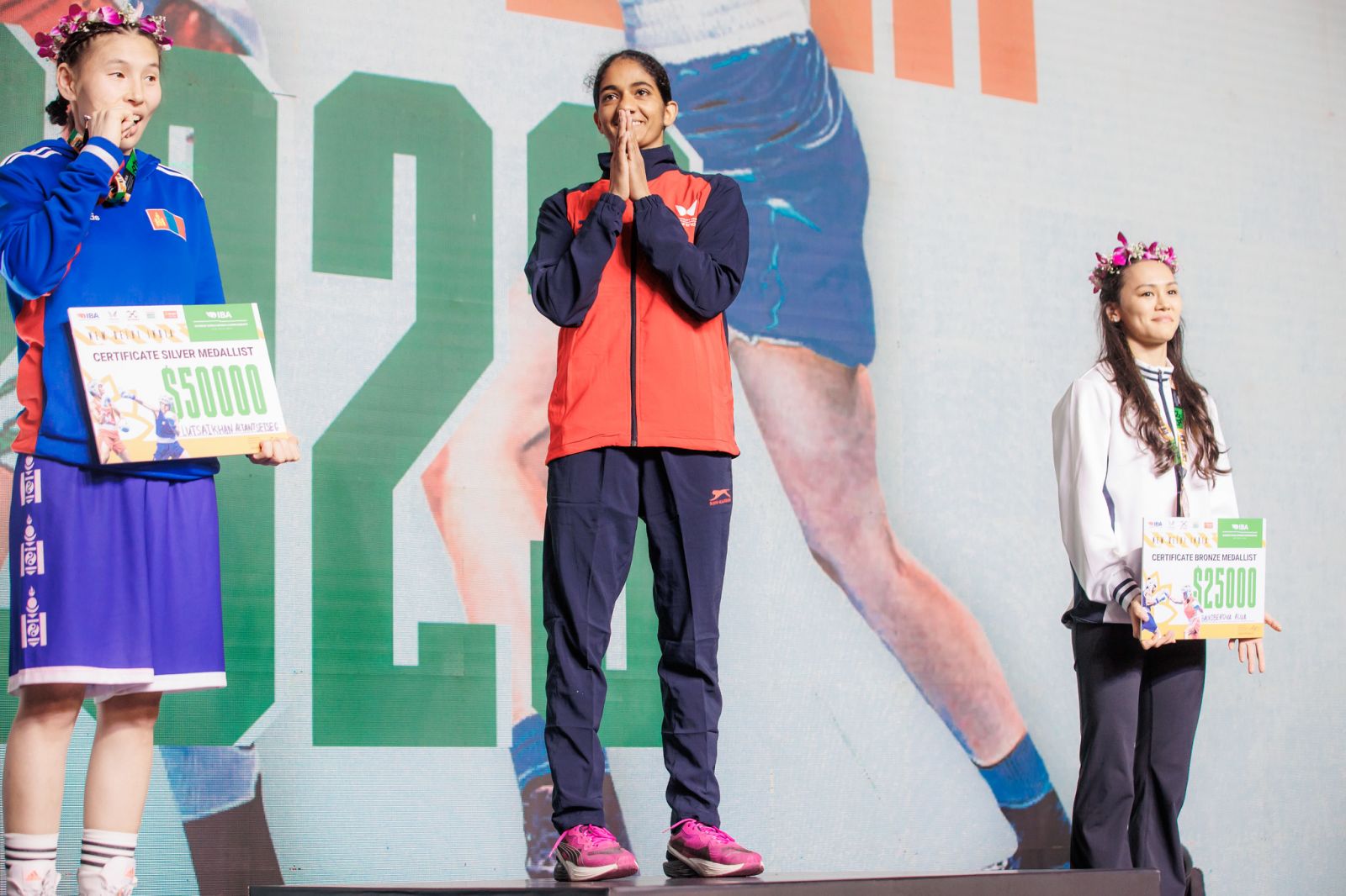 Ширүүн тулааны дараа Ниту ялж, дэлхийн аварга болсон бол манай тамирчин эмэгтэй боксын Монголын анхны Дэлхийн аваргын мөнгөн медальт болж, нэрээ түүхэнд мөнхөллөө.