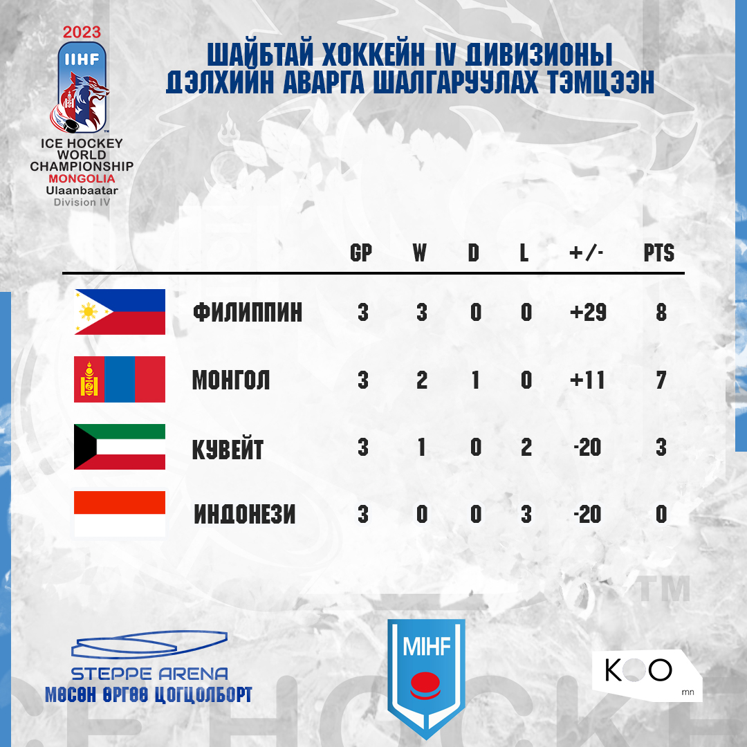 Монгол Улсад анх удаа зохион байгуулагдсан шайбтай хоккейн IV Дивизионы Дэлхийн аварга шалгаруулах тэмцээн "Steppe arena"-д амжилттай зохион байгуулагдаж, өчигдөр өндөрлөлөө.