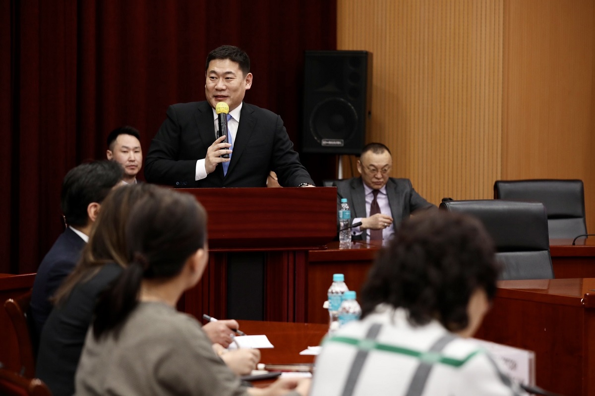 Ерөнхий сайд олон улсын байгууллагаас ажлын гараагаа эхэлж ажлын арга барил, дэг журмыг суралцаж байснаа дурдаад “Шинэ сэргэлт” илтгэл тавилаа. Илтгэлийнхээ эхэнд олон улсын геополитикийн нөхцөл байдлын талаар дэлгэрэнгүй ярьж, Монгол Улсын эдийн засгийн нөхцөл байдлын талаар танилцуулав. Манай улсын нийт экспортын 93 хувь нь уул уурхайн бүтээгдэхүүнээс хамааралтай. Уул уурхай дагасан далд эдийн засгийг ил болгоход Засгийн газар анхаарч буйг Ерөнхий сайд тэмдэглэв. Мөн “Шинэ сэргэлтийн бодлого”-ын хэрэгжилтийн талаар ярьж, боомтын сэргэлтийн төслүүд эрчимтэй хэрэгжиж буйг онцоллоо. Тавантолгой -Зүүнбаян чиглэлийн 416 км төмөр замын ажил дуусаж зүгшрүүлэх тээвэр эхлүүлсэн. Зүүнбаян-Ханги чиглэлийн 226 км төмөр замыг найман сарын хугацаанд ашиглалтад оруулсан, Тавантолгой-Гашуунсухайт чиглэлийн 267 км төмөр зам мөн ашиглалтад орсон зэргийг дурдав.