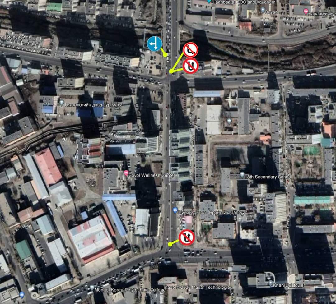 Маргааш буюу 2023 оны гуравдугаар сарын 29-ний 06:00 цагт Механик тээврийн сургууль болон "Хөсөг" трейдийн уулзварын хөдөлгөөн зохион байгуулалтад дараах байдлаар өөрчлөлт орно.
