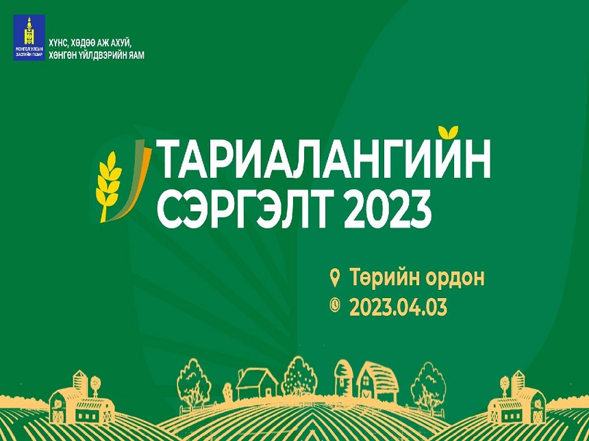 Хүнс, хөдөө аж ахуй, хөнгөн үйлдвэрийн яамнаас хаврын тариалалтын босгон дээр газар тариалангийн салбарын үндэсний чуулганыг зохион байгуулах гэж байна. Чуулганд Монгол Улсын Засгийн газар, салбарын яам, эрдэмтэн судлаачид, багш, мэргэжилтэн, мэргэжлийн холбоод болон үр тариа, төмс, хүнсний ногоо, жимс жимсгэнийн аж ахуй эрхлэгч 800 гаруй зочид төлөөлөгч оролцоно.