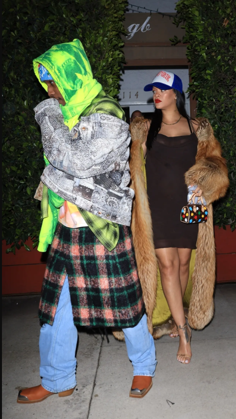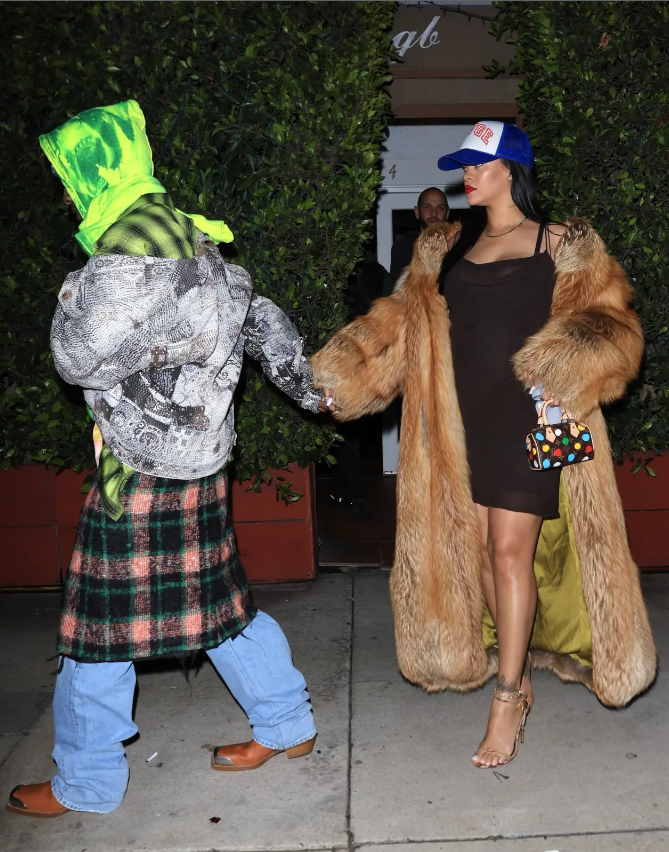 Реппэр A$AP Rocky хүүтэйгээ ижил өнгийн цамцаар гоёсон бол бүх цаг үеийн хамгийн загварлаг бие давхар бүсгүйгээр тодорсон дуучин Рианна богино даашинз, үслэг хүрэм, саравчтай малгайгаар гоёжээ.