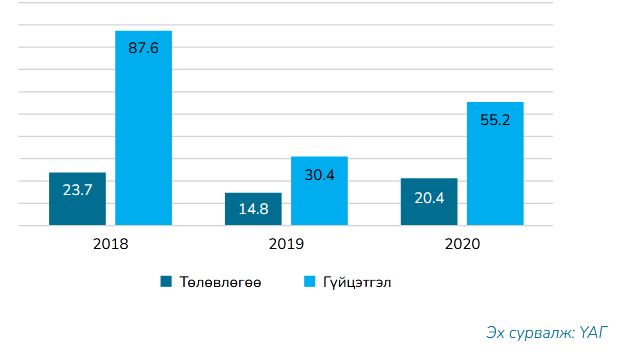 2018-2020 оны дэлгэрэнгүй мэдээлэлд үндэслэн шинжлэхэд манай улсын Засгийн газар хандивлагч орон, олон улсын байгууллагаас 2018 онд 590.7 сая ам. доллар, 2019 онд 610.2 сая ам. доллар, 2020 онд 1,195.0 сая ам. доллар, нийт 2,395.9 сая ам. долларын гадаад зээл авч ашигласан тухай Нээлттэй нийгэм форумын судалгаанд дурджээ.