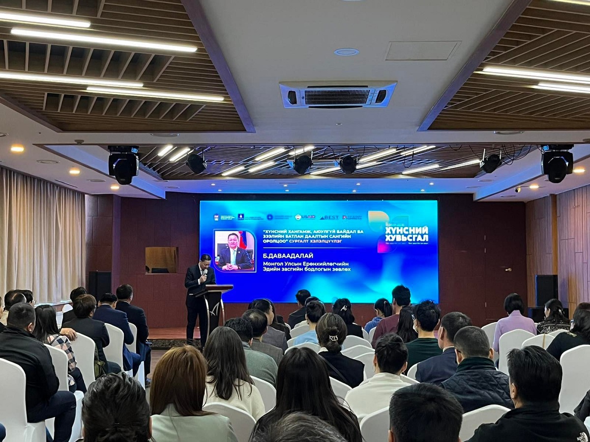 Монгол Улсын Ерөнхийлөгчийн санаачилсан "Хүнсний хангамж, аюулгүй байдал" үндэсний хөдөлгөөний хүрээнд "Хүнсний хангамж, аюулгүй байдал ба Зээлийн батлан даалтын сангийн оролцоо" сэдэвт сургалт, хэлэлцүүлэг Блью скай тауэр, Эмералд хурлын танхимд болж байна.