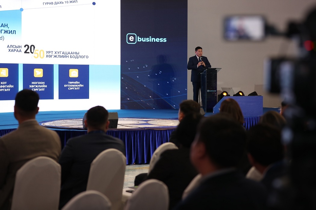 Монгол Улсын Ерөнхий сайд Л.Оюун-Эрдэнэ “E-Business” платформын нээлтэд оролцож бизнес эрхлэгчдэд “Алсын хараа-2050”, “Шинэ сэргэлт”-ийн бодлогын хэрэгжилт, бизнесийн таатай орчныг бүрдүүлэхэд Засгийн газраас авч хэрэгжүүлж буй бодлого, арга хэмжээний талаар танилцууллаа.