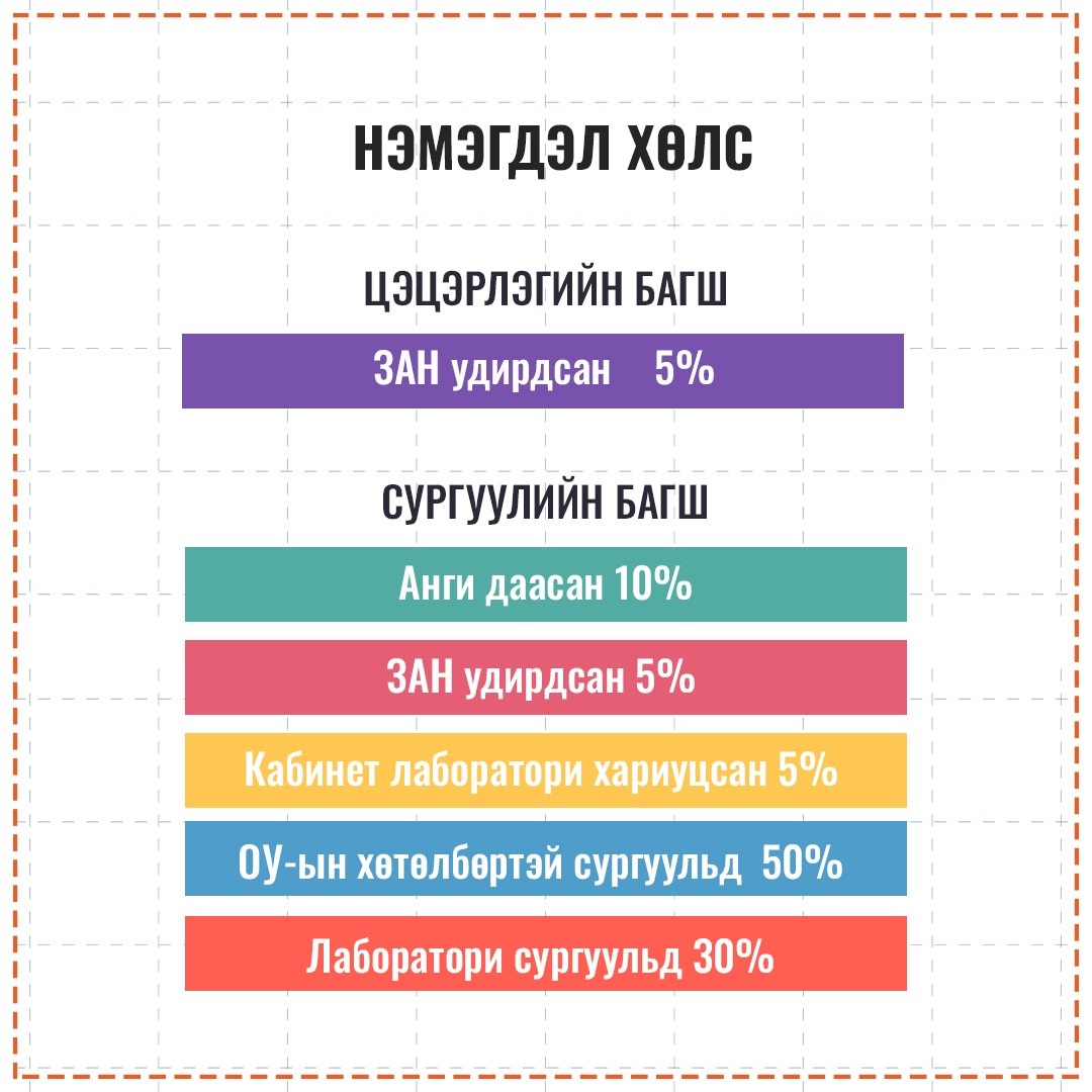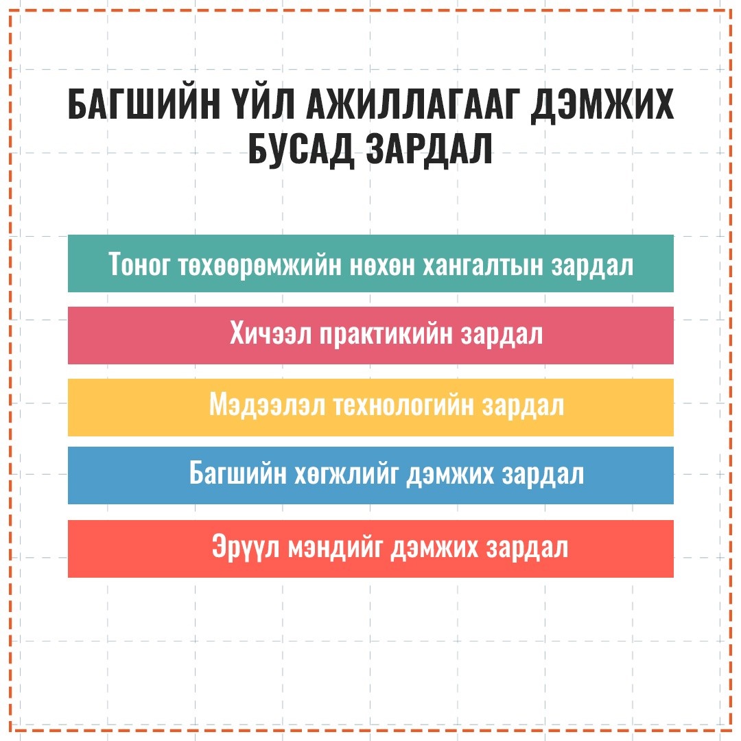 -Мөн хичээл сургалтын үйл ажиллагааг сайжруулах, хувьсах зардлыг оновчтой хуваарилах зорилгоор багшийн үйл ажиллагааг дэмжих бусад зардлыг 2022 оноос эхлэн шийдвэрлэж байна. Үүнд эрүүл мэндийн, дата хэрэглээний, хичээл практикийн зэрэг зардал багтдаг.