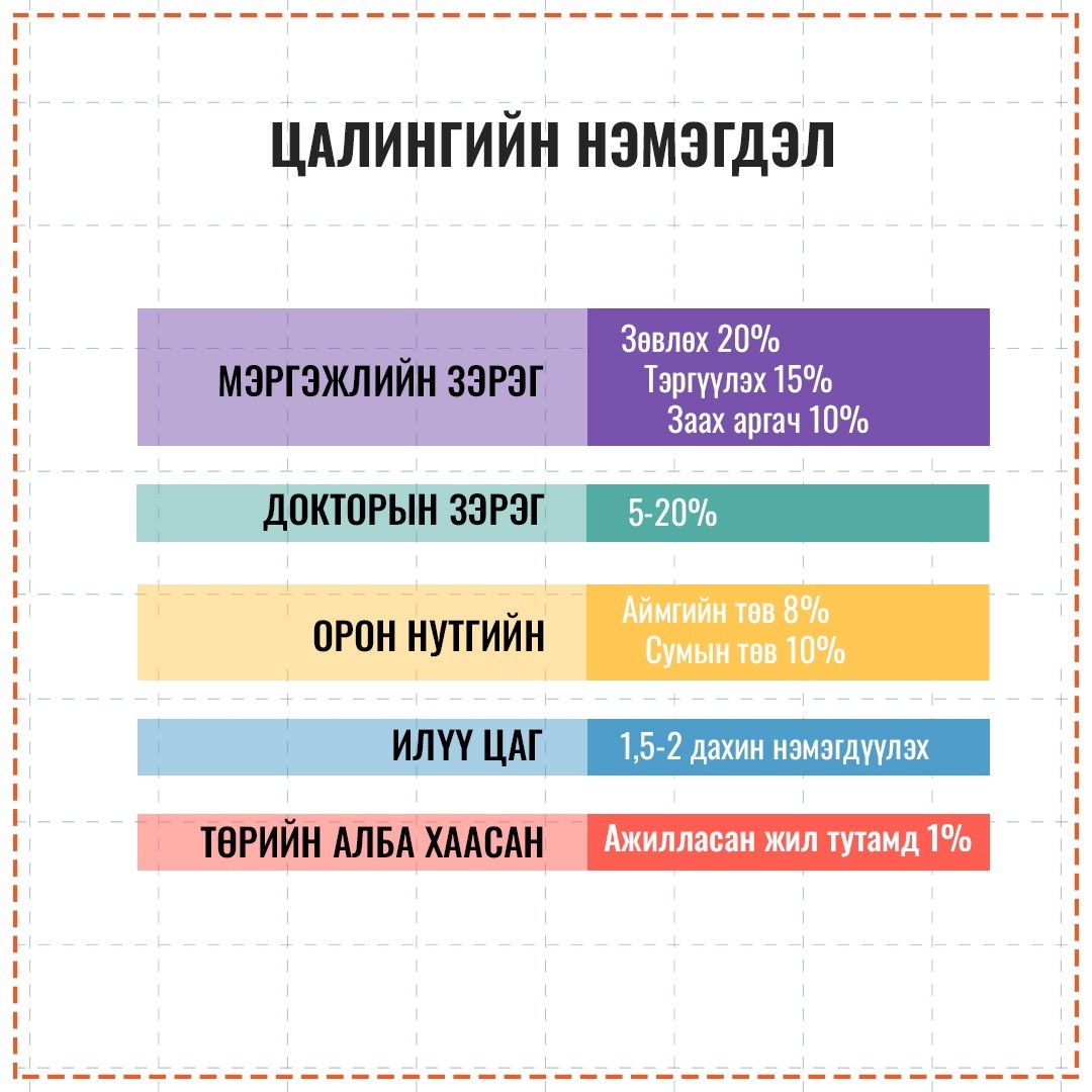 -Багш нар үндсэн цалингаас гадна цалингийн нэмэгдэл, нэмэгдэл хөлс, гүйцэтгэл үр дүнгийн урамшуулал авдаг.