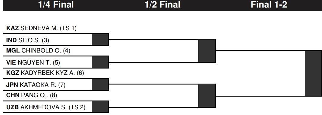 68 кг: Энхсайханы Дэлгэрмаа Энэтхэгийн Ниша Нишатай учраа таарчээ.