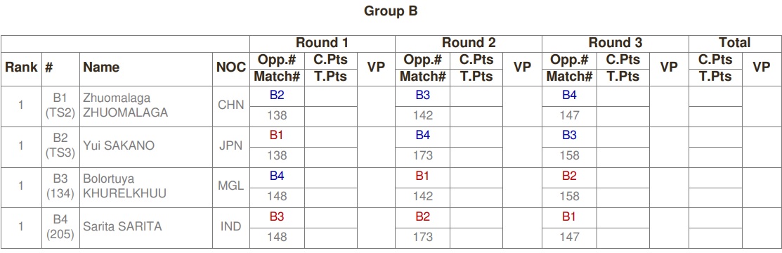 59 кг: Хүрэлхүүгийн Болортуяа Энэтхэгийн Сарита Саритатай барилдана.