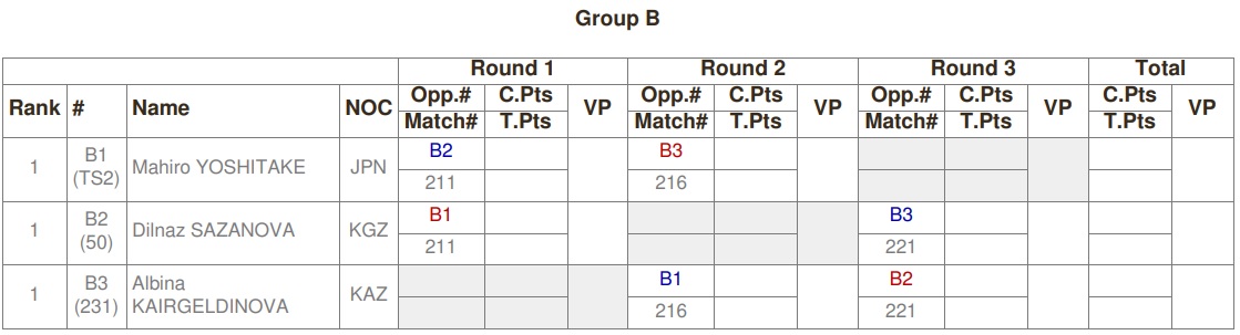 53 кг-д манай олимп, дэлхийн хүрэл медальт Бат-Очирын Болортуяа барилдана. Эхний тойрогт хийлж, дараагийн тойрогтоо Өмнөд Солонгосын Hyunyoung OH, Вьетнамын Thi Dao BUI хоёрын ялсантай учрах юм. Хагас шигшээд Японы супер охин,  2021 оны Ослогийн дэлхийн аварга, 111 дараалан ялаад байгаа Акари Фүжинамитай таарна.