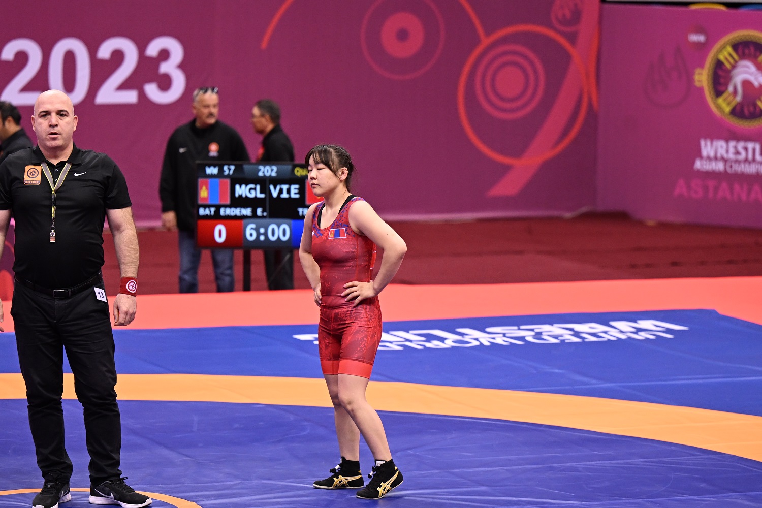 57 кг-д өсвөр үеийн ДАШТ-ий хүрэл медальт Бат-Эрдэнийн Эрдэнэсувд эхлээд Вьетнамын Thi Anh TRAN-тай таарсан. Манай бөх цэвэр ялж, дараагийн шатанд ДАШТ-ий хүрэл медальт, Азийн аварга, Японы Саэ Нанжотой барилдах болсон.