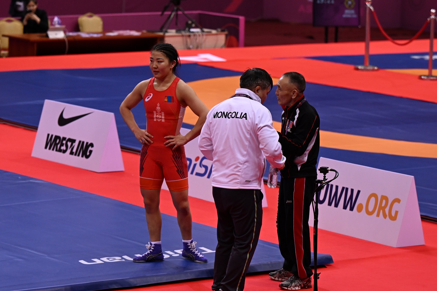 Өчигдөр эмэгтэйчүүдийн барилдаан эхэлж, манай баг нэг мөнгөн медаль хүртсэн. Өнөөдөр эмэгтэй 53, 57, 62, 65, 72 кг-ын жингийн барилдаанууд явагдаж байна.