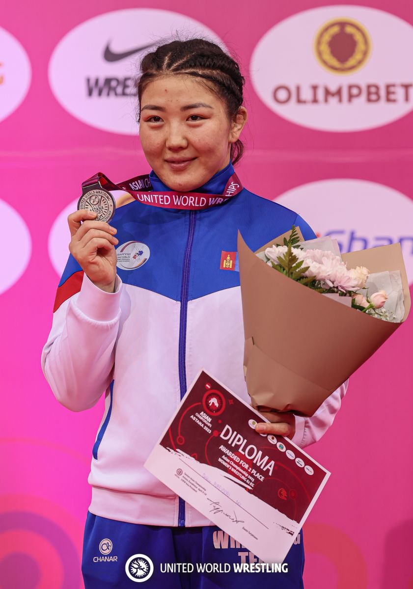 Алтан медалийн төлөөх барилдаанд түүнийг ялсан “Токио-2020” олимпийн наадмын мөнгөн медальт, “Нур-Султан-2019”, “Осло-2021” дэлхийн хошой аварга Кыргызстаны Айсулуу Тыныбекова 5 дахь удаагаа тивийн аваргаар тодров.