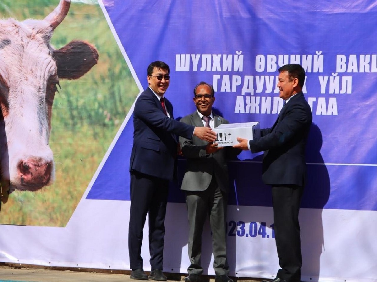 Вакцин хүлээлгэн өгөх үйл ажиллагаанд Хүнс, хөдөө аж ахуй, хөнгөн үйлдвэрийн яамны Төрийн нарийн бичгийн дарга Т.Жамбалцэрэн, НҮБ-ын Хүнс, хөдөө аж ахуйн байгууллагын Монгол дахь суурин төлөөлөгч Винод Ахужа болон бусад төлөөллүүд оролцлоо.