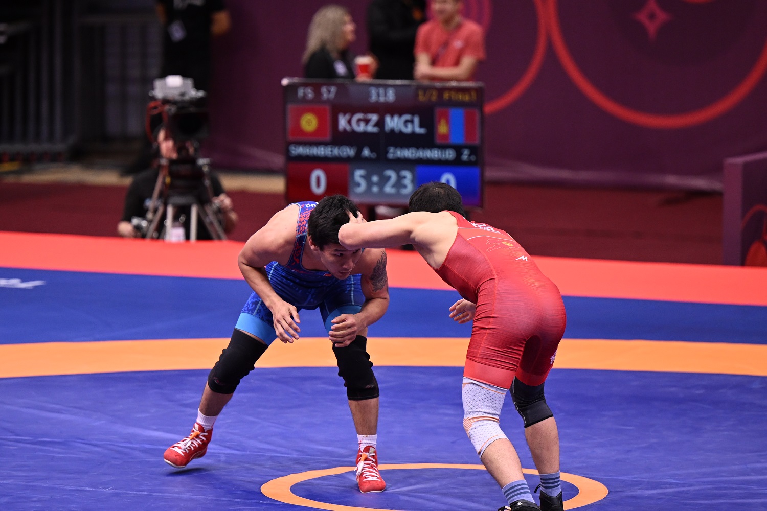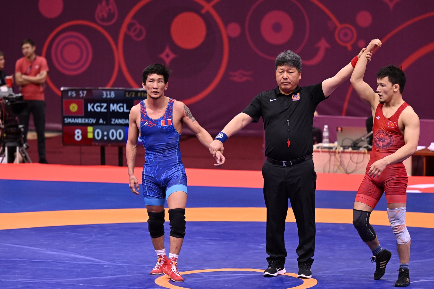 57 кг-д Занданбудын Занабазар эхний тойрогт хийлж, дараагийн тойрогт Тажикстаны дагестан залуу Сунатулло Бобоевтой барилдлаа. Манай бөх тун хянуур барилдаж, 9:0 ялсан.