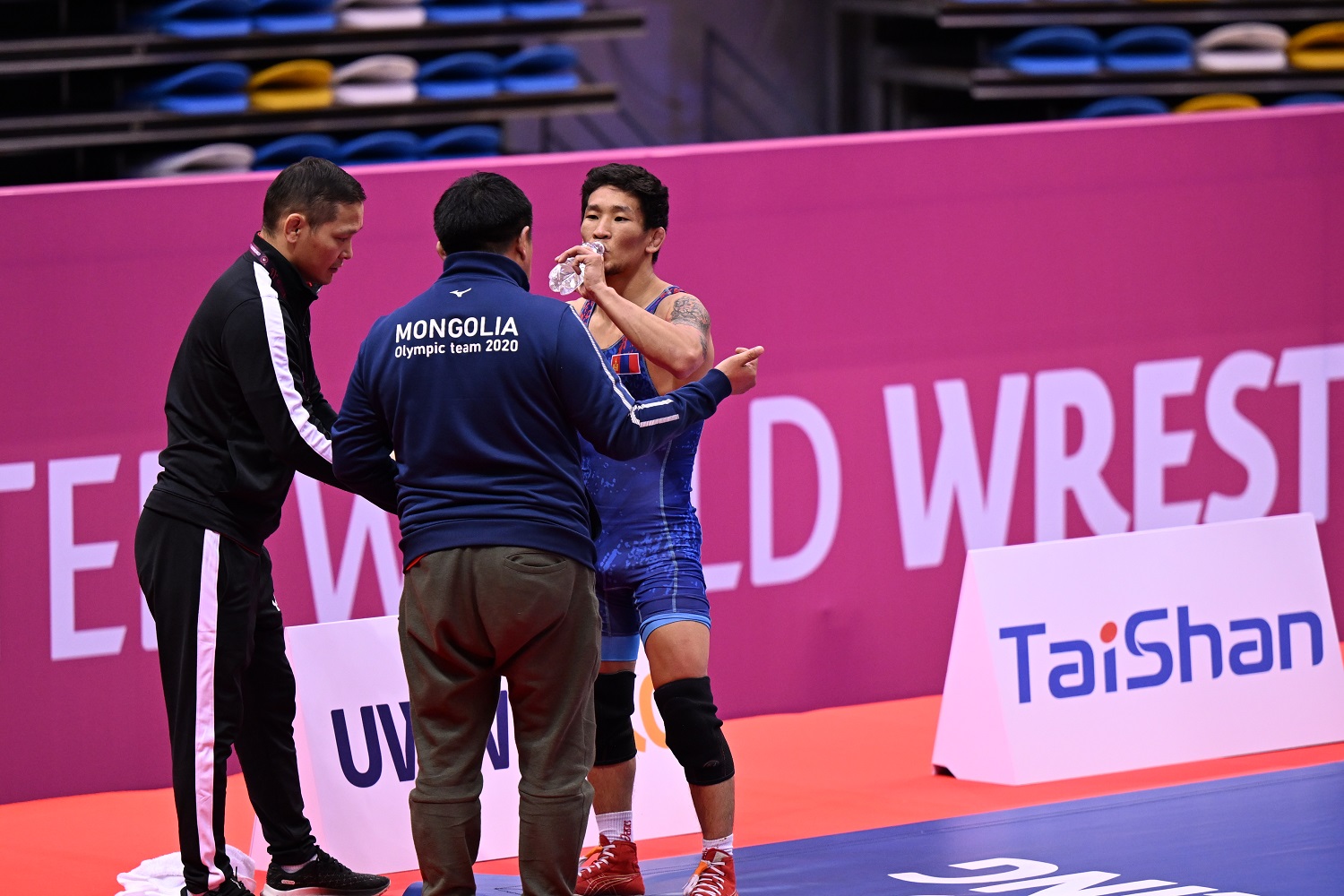 Оноо 1:4 байхад манай бөх оноо нөхөх гэж дайраад хариу мэхэнд орж, хүнд байдлаас мултарсан ч 4 оноо алдсан. Үлдсэн хугацаанд 3:8, 4:8, 5:8, 6:8 гэх мэтчлэн нэг нэгээр оноо авсан ч бүхэл оноо авч чадсангүй, 6:8 ялагдлаа. Хүрэл медалийн төлөөх барилдаан түүнд үлдээд байна. Өрсөлдөгч нь Казахстаны Рахат Калжан.