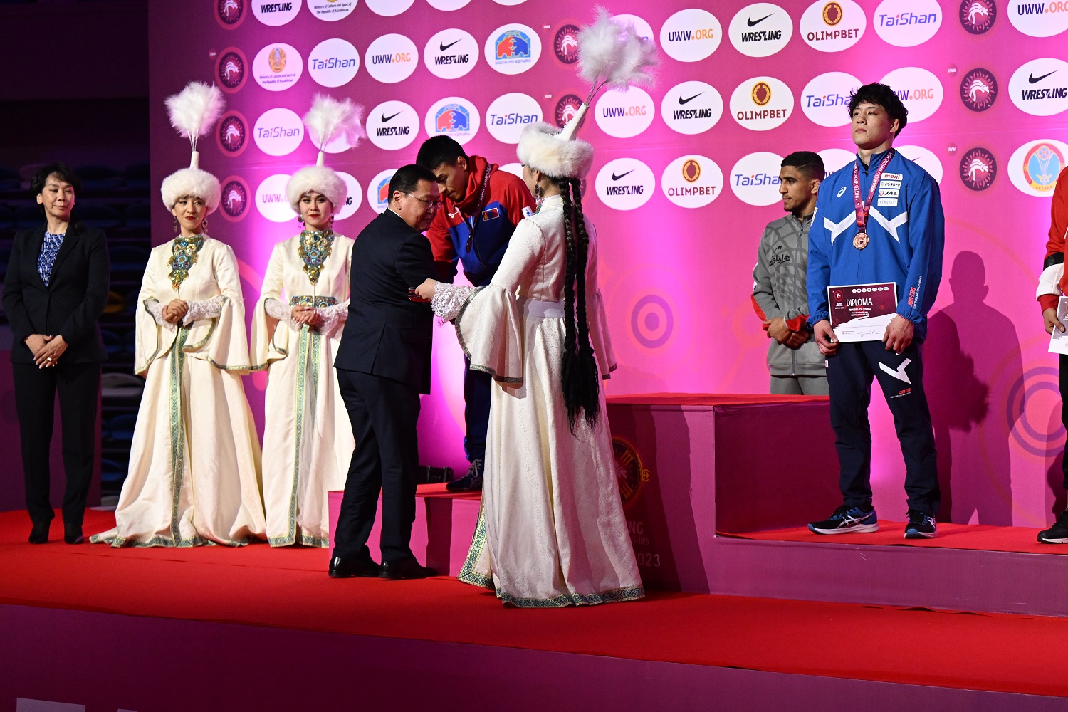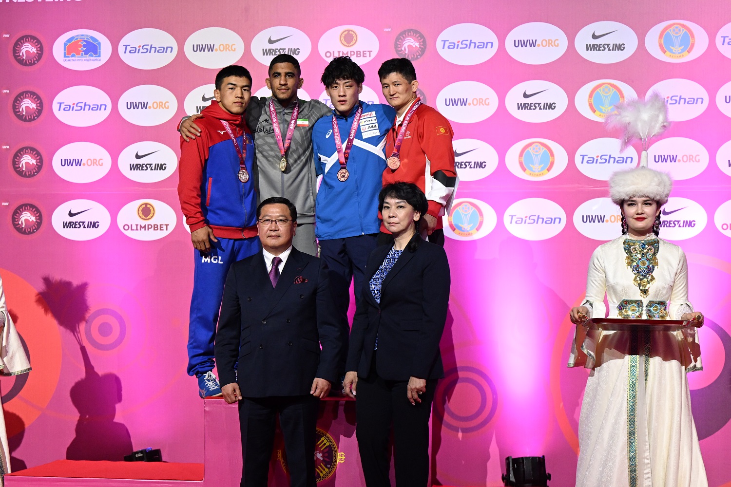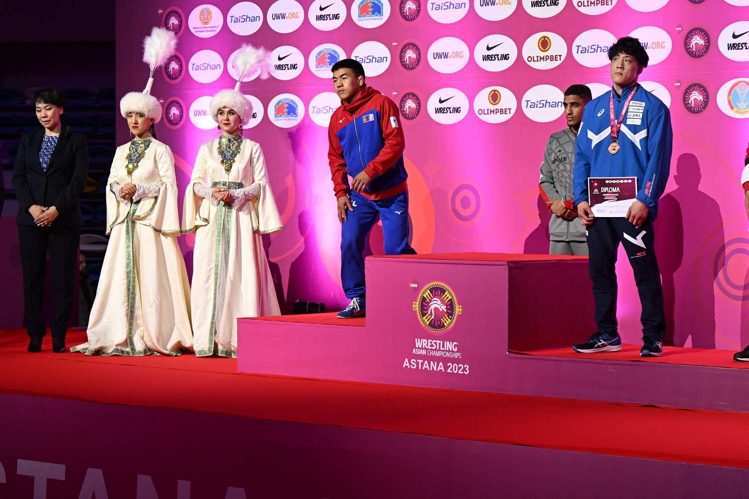 Казахстанд болж байгаа чөлөөт бөхийн Азийн аваргын тэмцээний эрэгтэйчүүдийн тэмцээн 57, 65, 70, 79, 97 кг-ын жингийн барилдаанаар өчигдөр эхэлж, медальтнууд тодорсон.