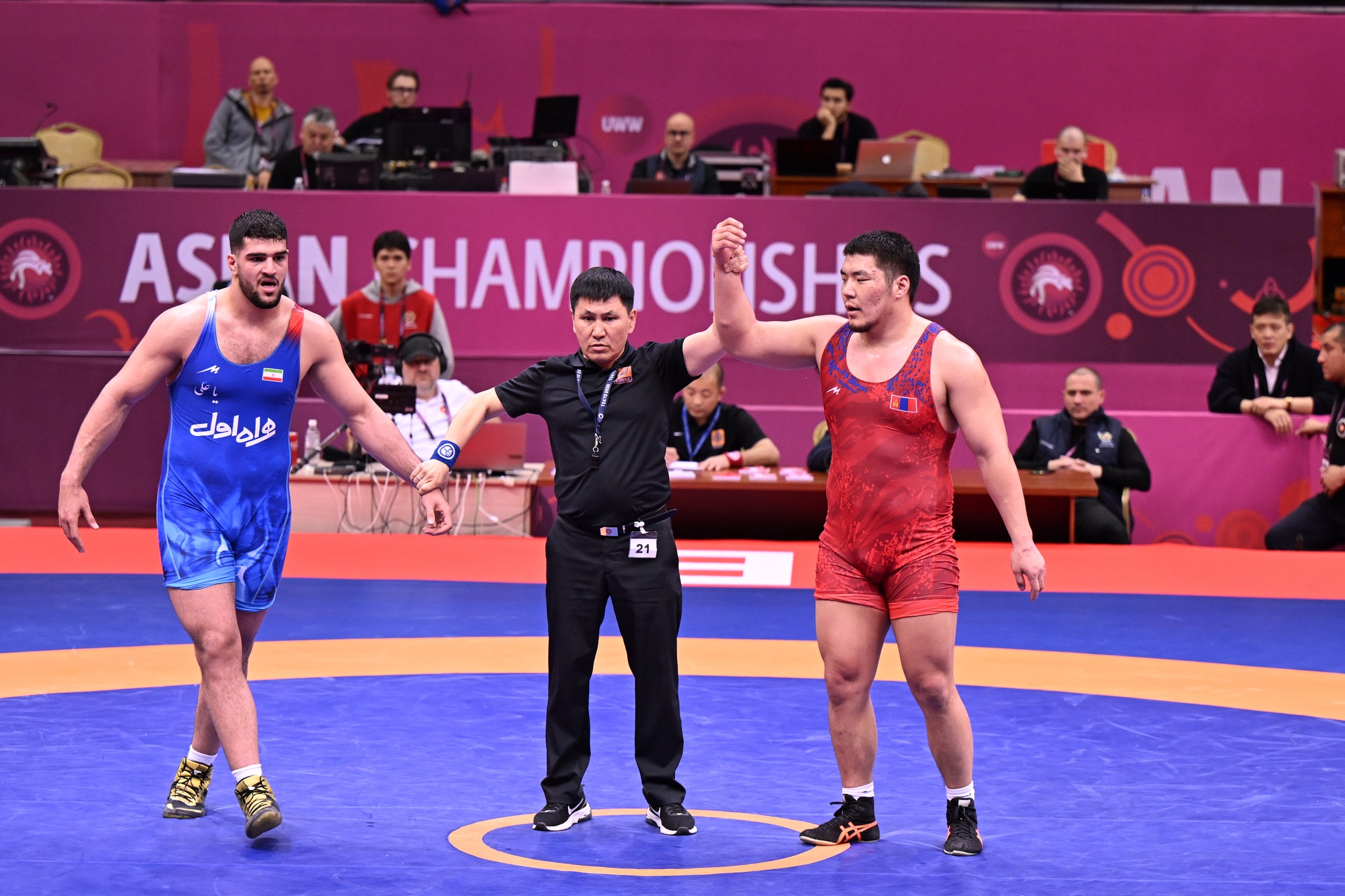 “Астана-2023” Азийн аварга шалгаруулах чөлөөт бөхийн тэмцээний сүүлийн өдөр 125 кг-ын жинд ДАШТ-ий мөнгө, хүрэл медальт, гавьяат тамирчин Мөнхтөрийн Лхагвагэрэл хагас шигшээд сүүлийн хоёр жил U17, U20, U23 насны дэлхийн аваргад түрүүлээд буй Ираны залуу од Амирреза Фардин Масуми Валадитай хүч шавхсан барилдаан хийлээ.