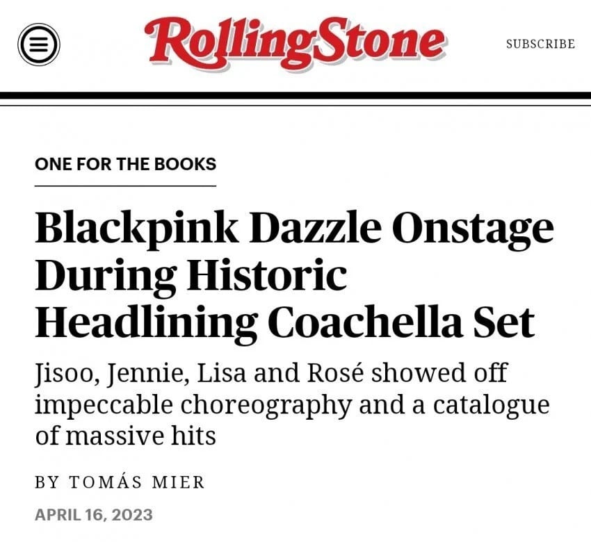 Өнгөрсөн амралтын өдрүүдэд болж өндөрлөсөн хамгийн том хөгжмийн наадам болох Coachella-д Өмнөд Солонгосын охидын "BLACKPINK" хамтлаг бүтэн цагийн турш үзүүлбэрээ үзүүлсэн. Тэд тус наадмын гол хамтлаг болсон хамгийн анхны к-поп охидын хамтлаг болсон. Юүтүб хуудасны шууд дамжуулалтаар 250 сая гаруй хүн тус хамтлагийн үзүүлбэрийг үзсэн бол Coachella наадам дээр 125 мянга гаруй хүн цугларчээ.
