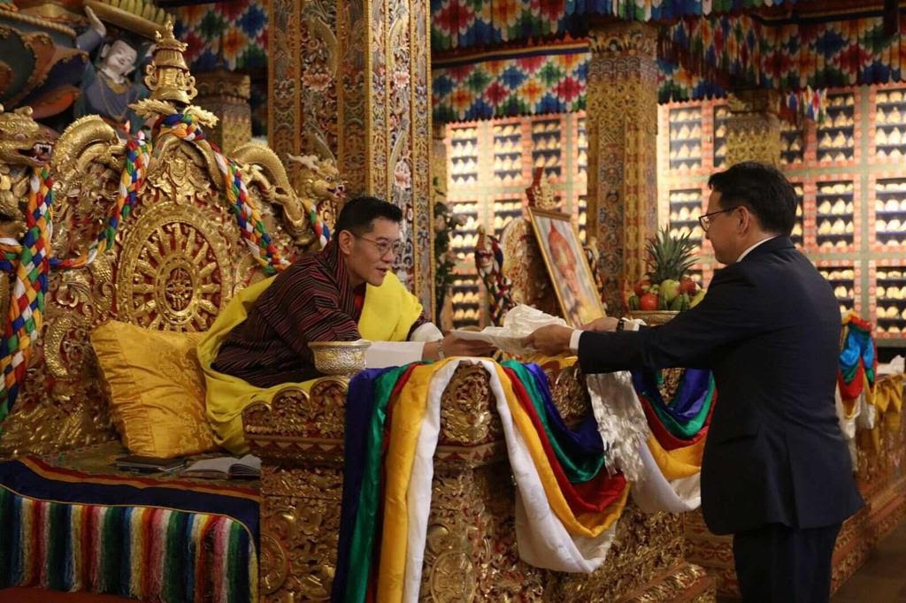 Цог Жавхлант Хаан Жигмэ Гэсэр Намжил Ванчук Монгол Улсаас Бутаны Хаант Улсад суух Элчин сайд Д.Ганбол дыг үүрэгт ажилдаа орж байгаад баяр хүргэж, хоёр орны харилцаа, хамтын ажиллагааг цаашид өргөжүүлэн хөгжүүлэхэд бүх талын дэмжлэг үзүүлэхээ тэмдэглэв.