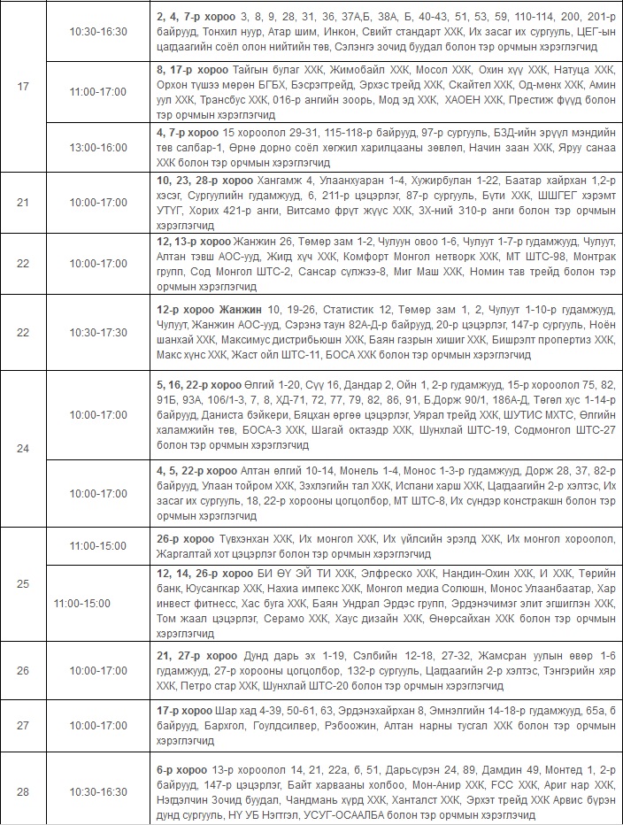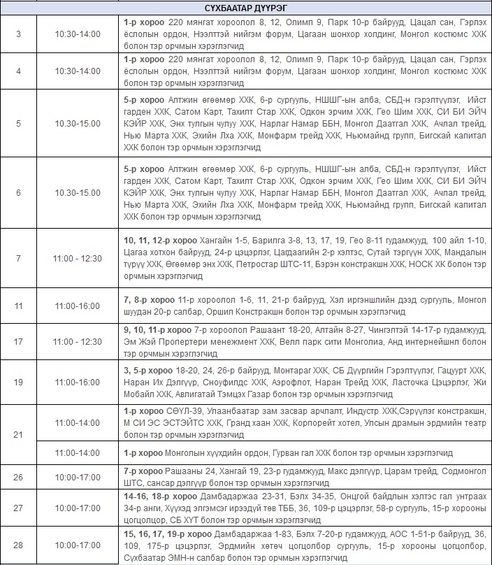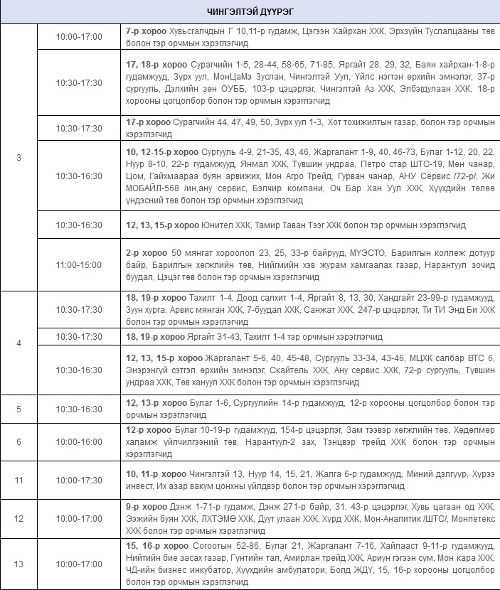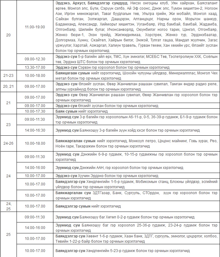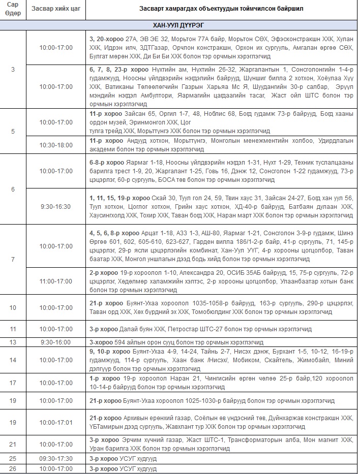 Мөн тодорхой шалтгааны улмаас засварын хуваарьт өөрчлөлт орох тохиолдолд цахилгаанаар хангагч байгууллагаас хэрэглэгчдэд мэдээллийг хүргэх юм.