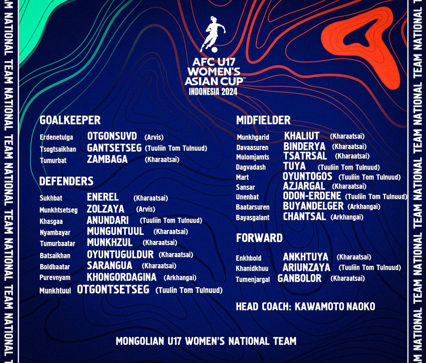 АХБХ-ны эмэгтэйчүүдийн 17 хүртэлх насны Азийн Цомын тэмцээний урьдчилсан эхний шатны хэсгийн тоглолтууд энэ сарын 24-28-нд Монгол улсад болох билээ. Манай охид эхний тоглолтоо 24-нд Австралийн шигшээтэй хийнэ.