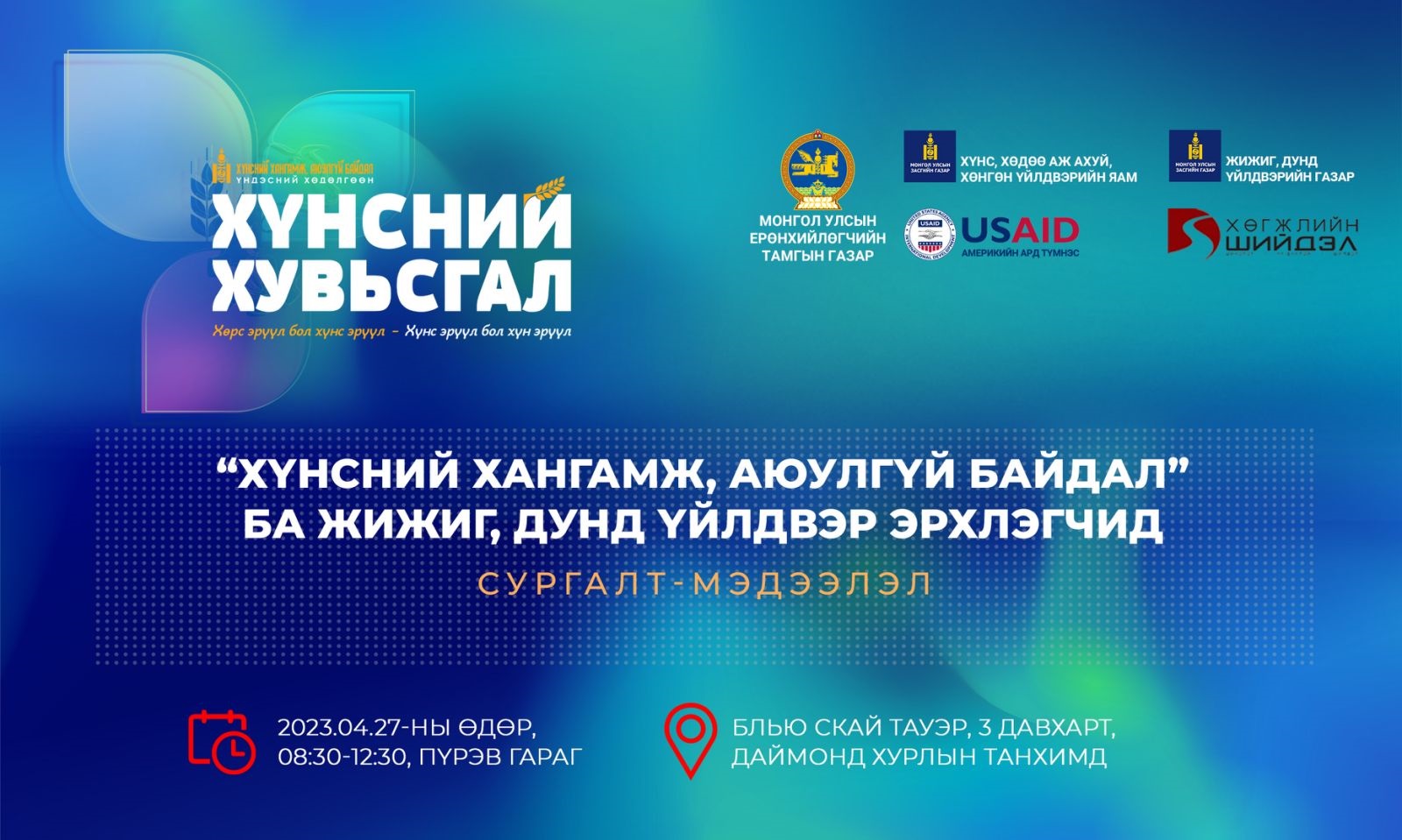 Монгол Улсын Ерөнхийлөгчийн санаачлан батлуулсан "Хүнсний хангамж, аюулгүй байдлыг хангах талаар авах зарим арга хэмжээний тухай" УИХ-ын 2022 оны 36 дугаар тогтоолын хэрэгжилтийг хангах хүрээнд хөнгөлөлттэй зээлийн санхүүжилтэд хэрхэн хамрагдах боломжуудыг үйлдвэр эрхлэгчдэд танилцуулах сургалт, мэдээлэл өгөх арга хэмжээг зохион байгуулах гэж байна.