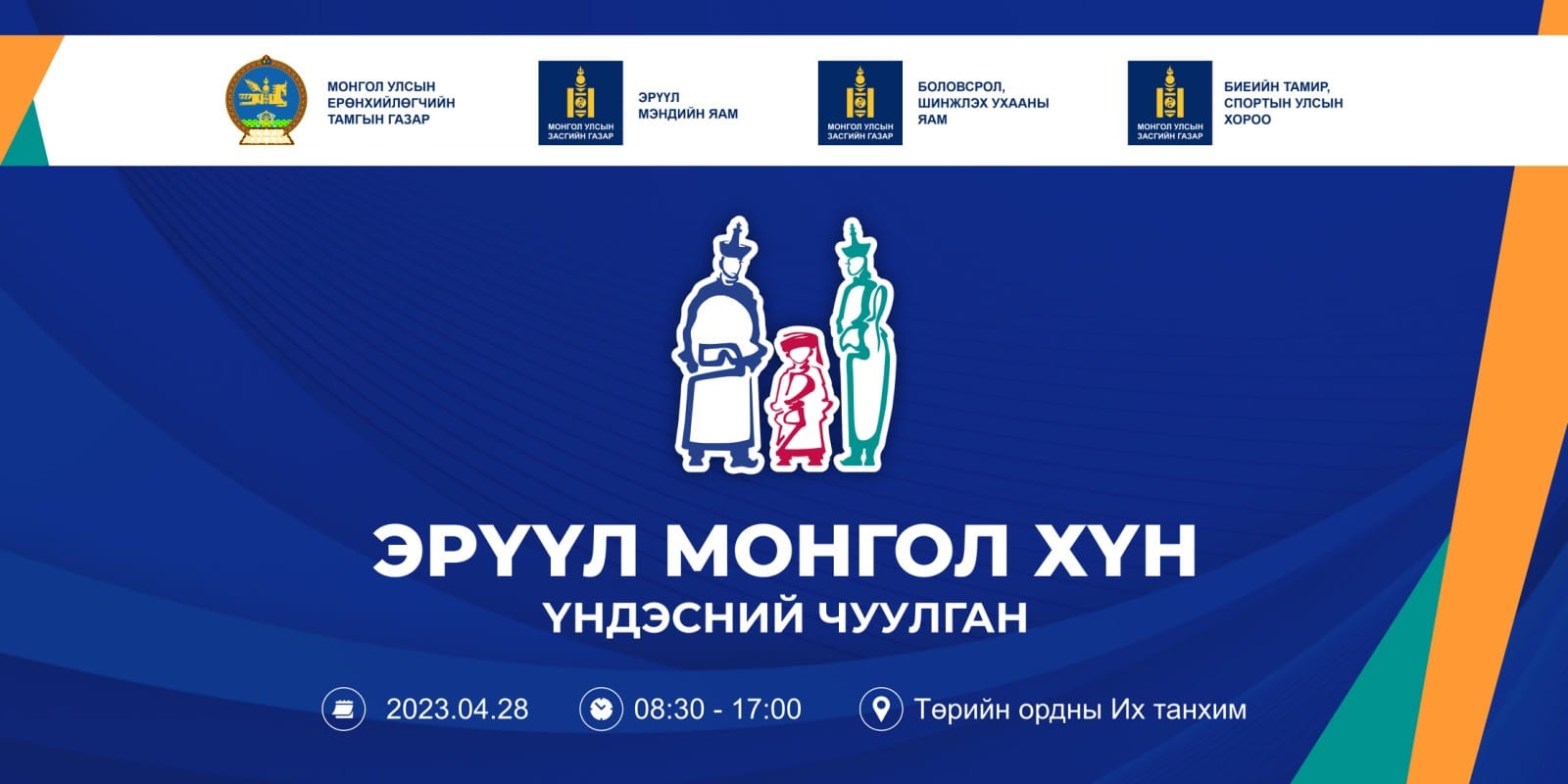 Монгол Улсын Ерөнхийлөгчийн санаачилгаар хэрэгжиж буй “Эрүүл монгол хүн” үндэсний хөдөлгөөний үзэл баримтлал, хамрах хүрээ, хэрэгжүүлэх үйл ажиллагааг үндэсний түвшинд танилцуулан хэлэлцүүлж, эрчимжүүлэх зорилгоор “Эрүүл монгол хүн” үндэсний чуулганыг 2023 оны 04 дүгээр сарын 28-ны өдөр Төрийн ордонд зохион байгуулах гэж байна.