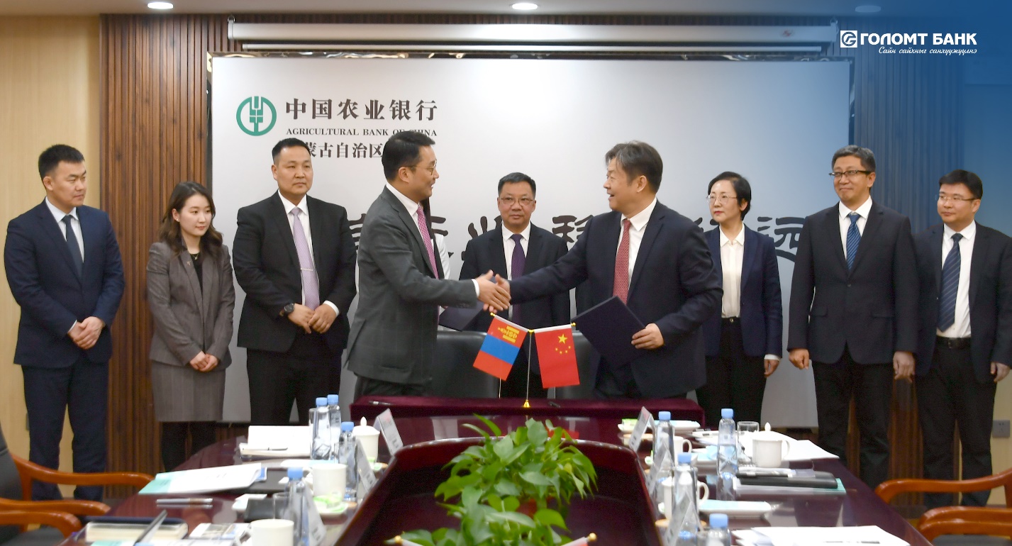 Голомт банкны гүйцэтгэх захирлын орлогч Д.Бадрал болон Agricultural Bank of China-ӨМӨЗО банкны гүйцэтгэх захирал Лиу Сунгшенг