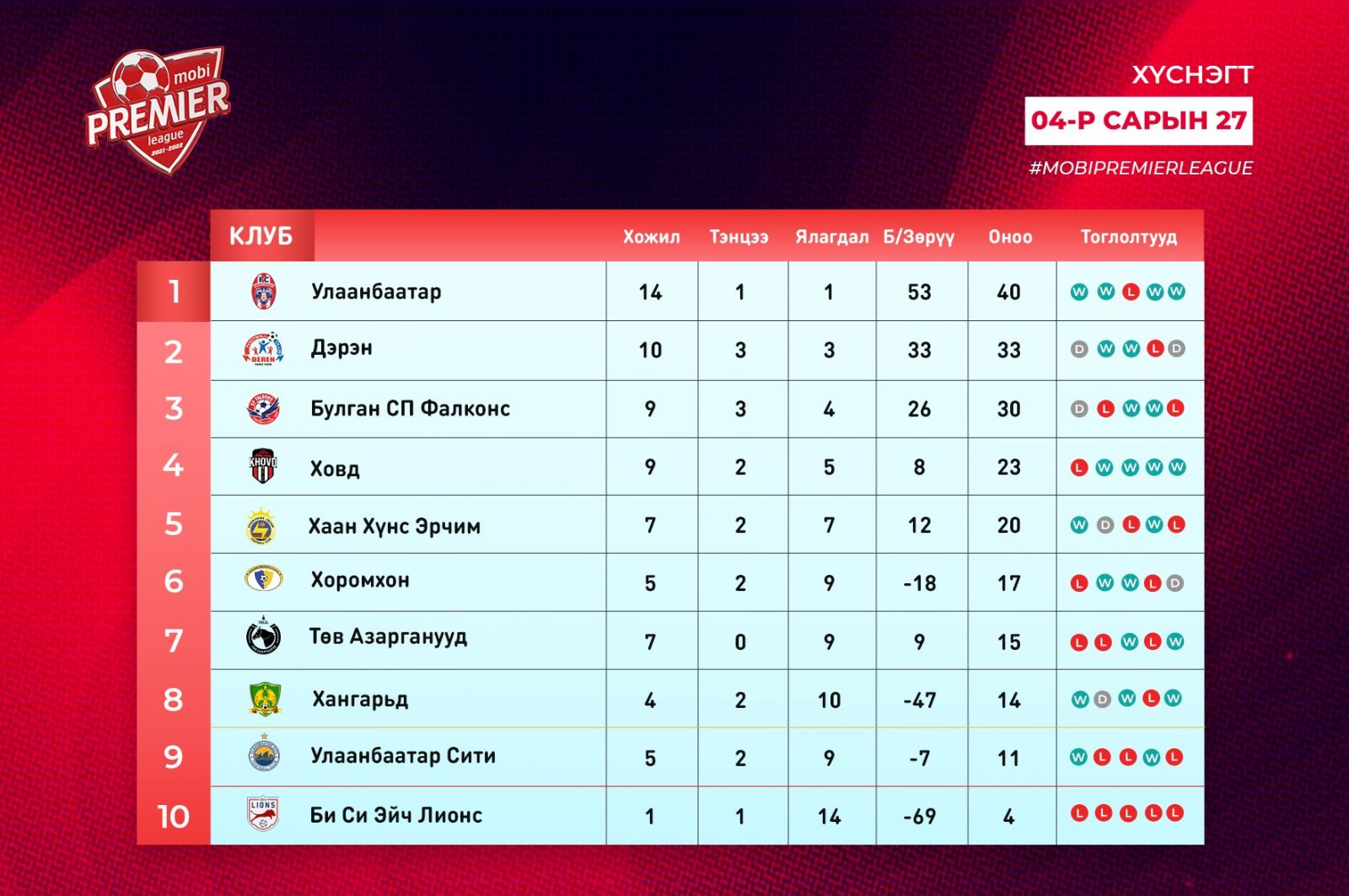 МХБХ-ны Моби Дээд Лигийн тэмцээн үргэлжлэн явагдаж байна. 16 тойргийн дараахь байдлаар Улаанбаатар клуб 40 оноотой хүснэгтийг тэргүүлж байгаа бол тэдний араас Дэрэн клуб 33 оноотой, Булган СП Фалконс 30 оноотой бичигдэж байна.