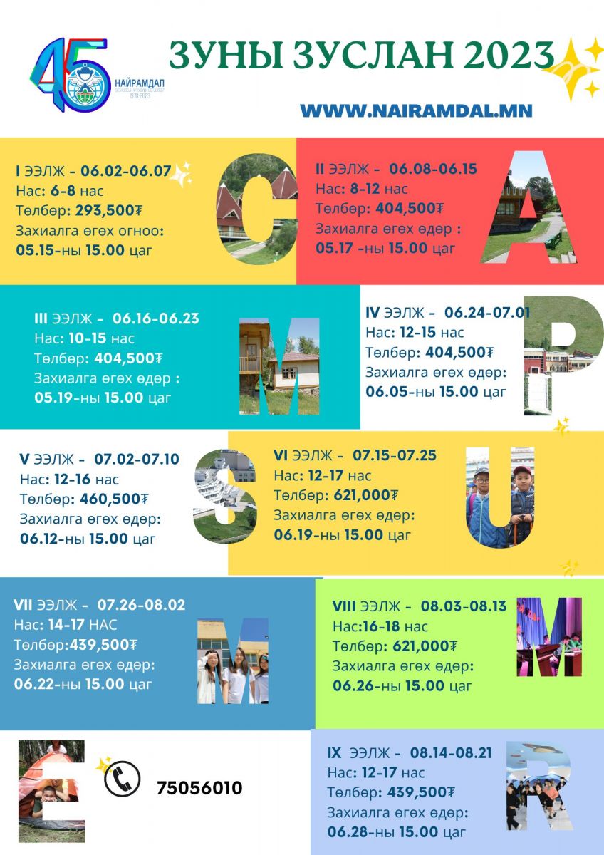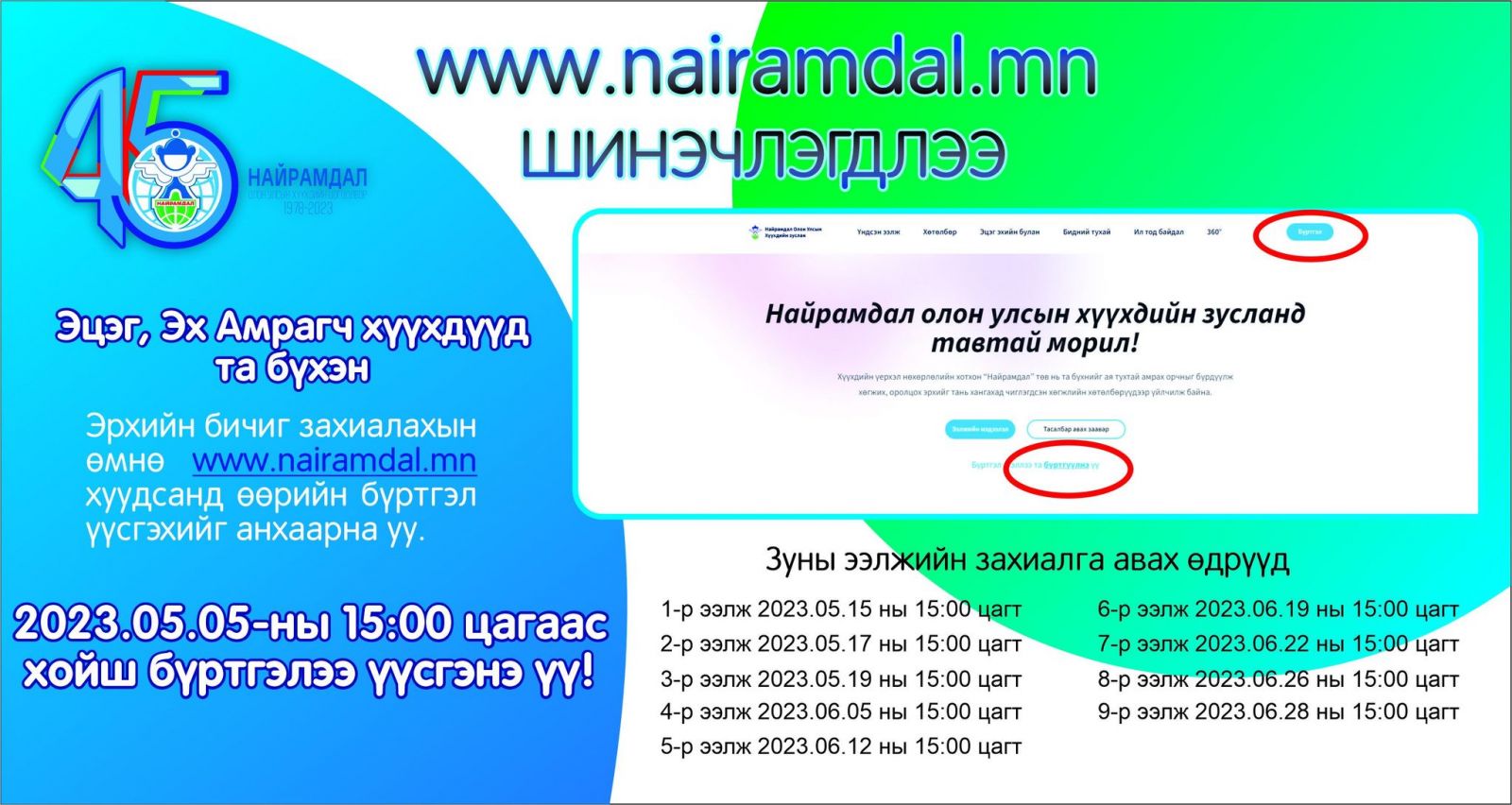 “Найрамдал” зусланд амрагч хүүхдүүдийн бүртгэл тавдугаар сарын 5-ны 15:00 цагаас эхэллээ. Амрах эрхийн бичгийг www.nairamdal.mn сайтаар захиална. Захиалахын өмнө өөрийн бүртгэл үүсгэх ёстой.