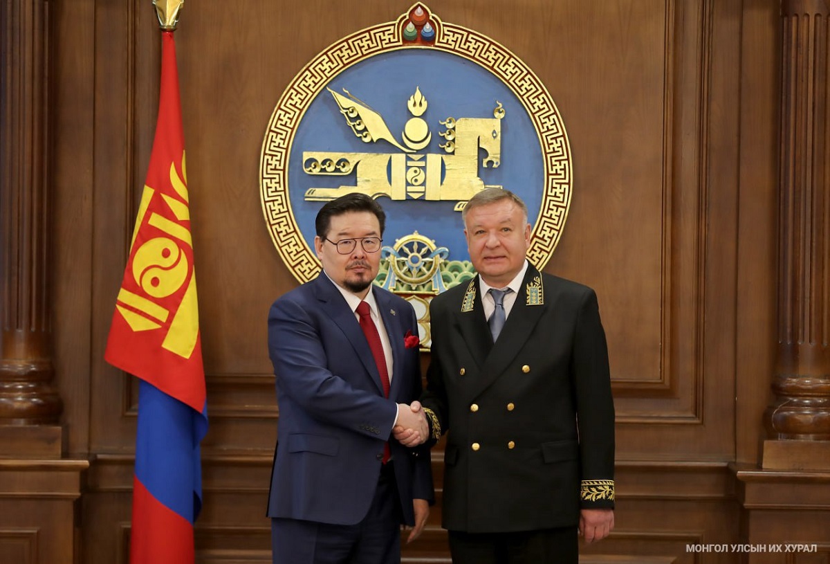 Монгол Улсын Их Хурлын дарга Г.Занданшатар өнөөдөр (2023.05.08) Оросын Холбооны Улсаас Монгол Улсад суугаа Онц бөгөөд Бүрэн эрхт Элчин сайд ноён Алексей Николаевич Евсиковыг хүлээн авч уулзлаа.