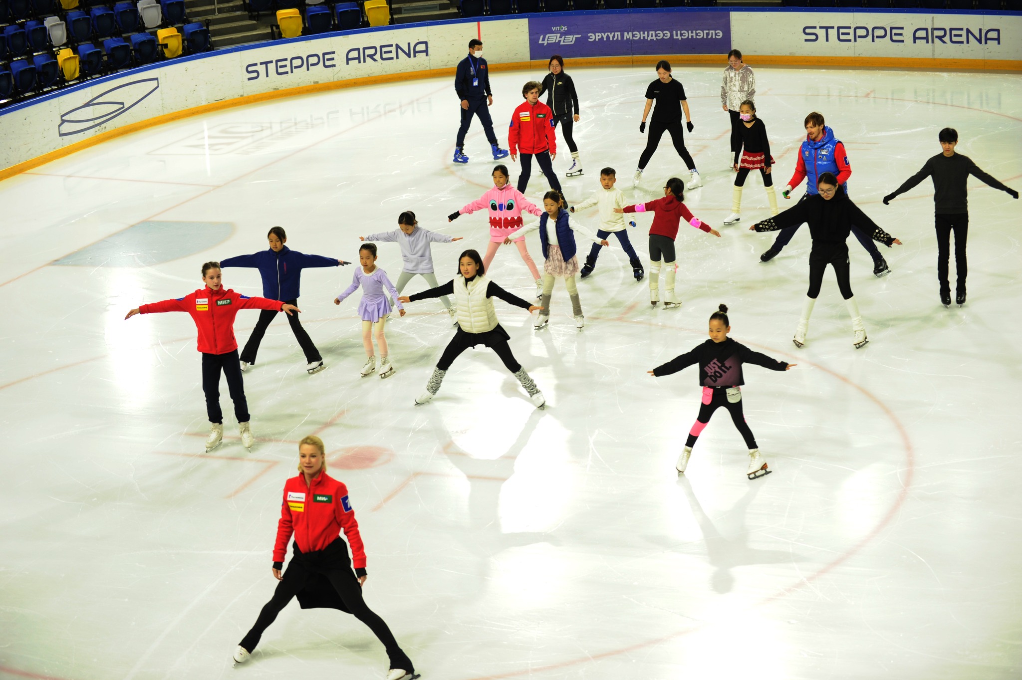 Монголд үзүүлэх тоглолт хийж байгаа ОХУ-ын одод уран гулгалтаар хичээллэж эхэлж байгаа монгол хүүхдүүдэд мастер-класс үзүүлж, хичээл заалаа.