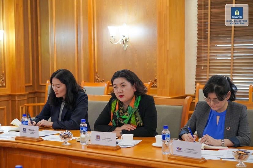 Мөн уулзалтын үеэр тус яамнаас хувийн эрх зүйн шинэтгэлийг эрчимжүүлэх ажлын хүрээнд Гэр бүлийн тухай хуулийн шинэчилсэн найруулгын төслийг Хөдөлмөр, нийгмийн хамгааллын яамтай хамтран боловсруулж буй талаар дурдаж, хүүхдийн эрхийг хамгаалахад эрх бүхий байгууллагуудын чадавхыг сайжруулах болон байгууллага хооронд уялдаа холбоотой ажиллахын ач холбогдлыг онцоллоо.